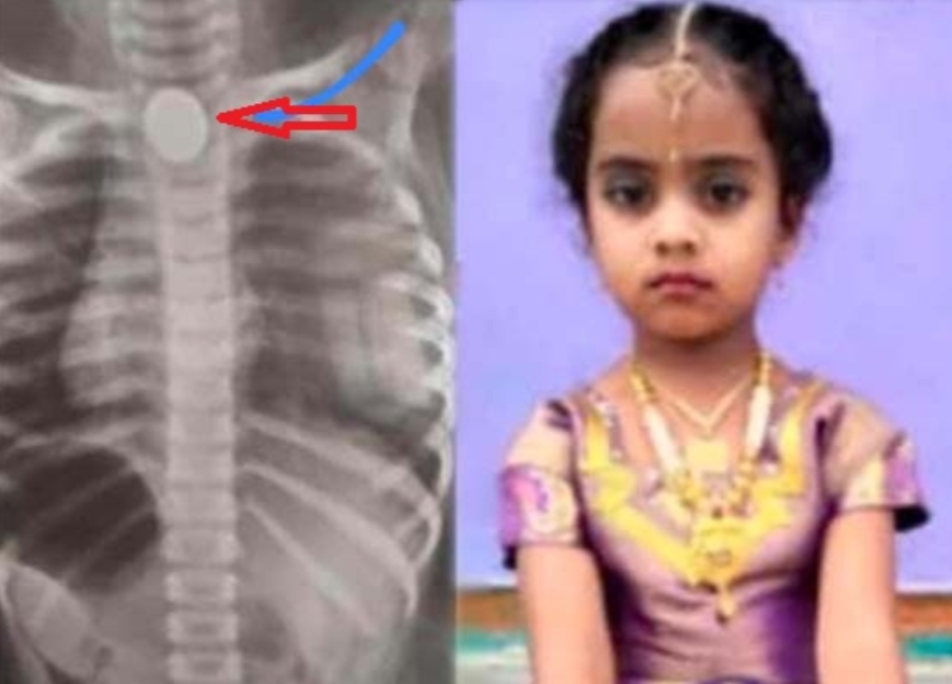 ಈಕೆ ಮೈಸೂರಿನ ಹಿರಿಕ್ಯಾತನಹಳ್ಳಿಯ ಅಜ್ಜಿ ಮನೆಯಲ್ಲಿದ್ದು, ಆಟವಾಡುತ್ತಿದ್ದಾಗ ಆಕಸ್ಮಿಕವಾಗಿ 5 ರೂ. ನಾಣ್ಯ ನುಂಗಿದ್ದಾಳೆ.