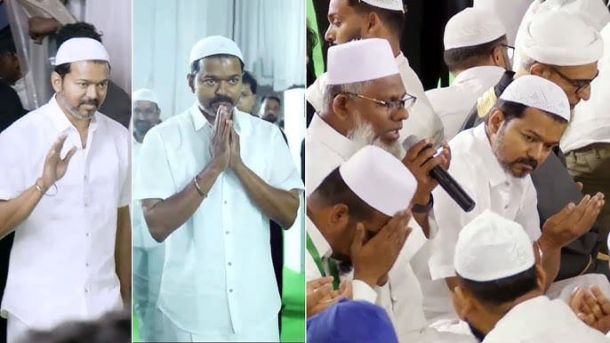 Actor Vijay: ತಮಿಳಗ ವೆಟ್ರಿ ಕಳಗಂ ಸಂಸ್ಥಾಪಕ ನಟ ವಿಜಯ್ ಅವರು ಇತ್ತೀಚೆಗಷ್ಟೇ ರಾಯಪೆಟ್ಟಾ ವೈಎಂಸಿಎ ಕ್ರೀಡಾಂಗಣದಲ್ಲಿ ಆಯೋಜಿಸಿದ್ದ ಇಫ್ತಾರ್ ಕೂಟದಲ್ಲಿ ಭಾಗಿಯಾಗಿದ್ದರು. ಮುಸ್ಲಿಂ ಬಾಂಧವರ ಜೊತೆ ಕಾಣಿಸಿಕೊಂಡಿದ್ದರು. ಅವರ ಜೊತೆ ನಮಾಜ್ ಕೂಡಾ ಮಾಡಿದ್ದು, ಇದರ ಫೊಟೋ, ವಿಡಿಯೋ ಸೋಶಿಯಲ್ ಮೀಡಿಯಾದಲ್ಲಿ ವೈರಲ್ ಆಗಿದೆ.
