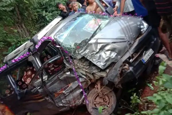 ಭೀಕರ ಅಪಘಾತದಲ್ಲಿ ಸಾವು ಸಂಭವಿಸಿದೆ. ಮದುವೆ ದಿಬ್ಬಣದ ಜನರನ್ನು ಕರೆದೊಯ್ಯುತ್ತಿದ್ದ ವಾಹನ ಮತ್ತು ಕಾರಿನ ನಡುವೆ ಮುಖಾಮುಖಿ ಡಿಕ್ಕಿಯಾಗಿ ಈ ಘಟನೆ ಜರುಗಿದೆ.