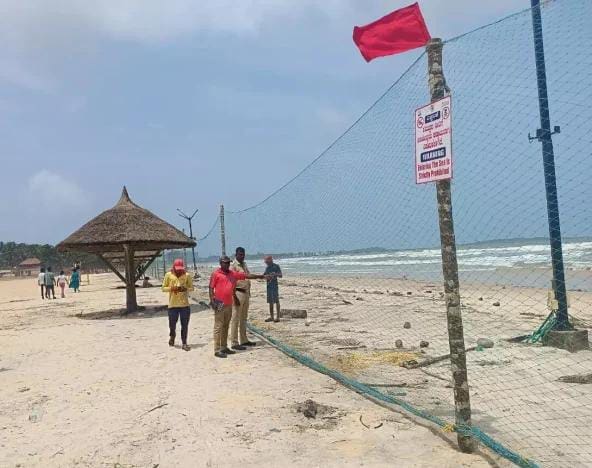 ಸಮುದ್ರತೀರದಿಂದ ಸುಮಾರು 20 ಅಡಿಗಳಷ್ಟು ದೂರ, ಒಂದು ಕಿ.ಮೀ. ಬೀಚ್ನ ಉದ್ದಕ್ಕೂ 10 ಅಡಿ ಎತ್ತರದಲ್ಲಿ ಫಿಶ್ನೆಟ್ ಬಳಸಿ ತಡೆಬೇಲಿಯನ್ನು ಹಾಕಲಾಗಿದೆ. ತಡೆಬೇಲಿಯ ಉದ್ದಕ್ಕೂ ಕಂಬಗಳಲ್ಲಿ ಎಚ್ಚರಿಕೆ ಸೂಚಕವಾಗಿ ಕೆಂಪು ಧ್ವಜವನ್ನು ಎಲ್ಲರಿಗೆ ಗೋಚರಿಸುವಂತೆ ಅಳವಡಿಸಲಾಗಿದೆ. ನೀರಿಗಿಳಿಯದಂತೆ ಕನ್ನಡ ಮತ್ತು ಆಂಗ್ಲ ಭಾಷೆಯಲ್ಲಿ ಎಚ್ಚರಿಕೆ ಫಲಕವನ್ನು ಹಾಕಲಾಗಿದೆ. ಸಮುದ್ರದ ಪರಿಸ್ಥಿತಿ ನೋಡಿಕೊಂಡು ಸೆಪ್ಟಂಬರ್ ಆರಂಭದಲ್ಲಿ ತಡೆಬೇಲಿಯನ್ನು ತೆರವುಗೊಳಿಸುವುದಾಗಿ ಪ್ರವಾಸೋದ್ಯಮ ಇಲಾಖಾಧಿಕಾರಿಗಳು ತಿಳಿಸಿದ್ದಾರೆ.