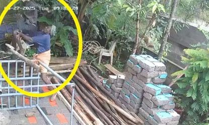 ಕೊಲ್ಲಂನ ಶಂಕರ್ ಎಂಬ ಕಾರ್ಮಿಕ ಇತರ ನಾಲ್ವರೊಂದಿಗೆ 2ನೇ ಮಹಡಿಯಲ್ಲಿನ ಕಾಂಕ್ರೀಟ್ ಕಿಟಕಿಯ ಮೇಲ್ಟಾವಣಿ ಮೇಲೆ ಕೆಲಸ ಮಾಡುತ್ತಿದ್ದ. ಈ ವೇಳೆ ಆತ ಜಾರಿಬಿದ್ದಿದ್ದಾರೆ. ಈ ಸಮಯದಲ್ಲಿ ಕೆಳಗಡೆ ನಿಂತಿದ್ದ ಗುತ್ತಿಗೆದಾರ ಗಣೇಶ್ ಮಹಡಿ ಮೇಲಿನಿಂದ ಶಂಕರ್ ಬೀಳುತ್ತಿರುವುದು ಗಮನಿಸಿ ತನ್ನ ಎರಡು ಕೈಗಳಿಂದ ಕ್ಯಾಚ್ ಹಿಡಿದಿದ್ದಾರೆ. ಹೆಚ್ಚಿನ ಭಾರ ತಾಳಲಾರದೆ ಅವರು ನಿರ್ಮಾಣ ಸಾಮಗ್ರಿಗಳ ಜಾರಿದಂತೆ ಬಿದ್ದಿದ್ದಾರೆ. ಹಾಗಾಗಿ ಕಾರ್ಮಿಕ ಶಂಕರ್ಗೆ ಆಗುತ್ತಿದ್ದ ಹೆಚ್ಚಿನ ಅಪಾಯವನ್ನು ಗುತ್ತಿಗೆದಾರ ಗಣೇಶ್ ತಪ್ಪಿಸಿದ್ದಾರೆ.