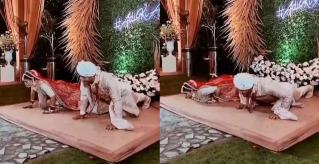 ಹೌದು, ಸಾಮಾನ್ಯವಾಗಿ ಮದುವೆ ಸಮಾರಂಭದಲ್ಲಿ ವಧು ಹಾಗೂ ವರರು ಬಂದ ಅತಿಥಿಗಳೊಂದಿಗೆ ಫೋಟೋಗೆ ಪೋಸ್ ನೀಡುವುದನ್ನು ನೋಡಿರುತ್ತೇವೆ. ಕೆಲವು ಜೋಡಿಗಳು ಹಾಡು ಅಥವಾ ಕಪಲ್ ಡ್ಯಾನ್ಸ್ ಪ್ರದರ್ಶಿಸುವ ಮೂಲಕ ಮನರಂಜನೆ ನೀಡುತ್ತಾರೆ. ಆದರೆ ಇಲ್ಲಿ ಜೋಡಿಯೊಂದು ಮದುವೆ ಕಾರ್ಯಕ್ರಮದಲ್ಲಿ ಅತಿಥಿಗಳಿರುವುದನ್ನು ಲೆಕ್ಕಿಸದೇ ನೀನಾ-ನಾನಾ ಎಂಬಂತೆ ಪುಶ್ ಅಪ್ಸ್ ಮಾಡಿದ್ದಾರೆ. ಇದನ್ನು ಕಂಡು ಅಲ್ಲಿದ್ದವರೆಲ್ಲಾ ಬೆರಗಾಗಿದ್ದಾರೆ.