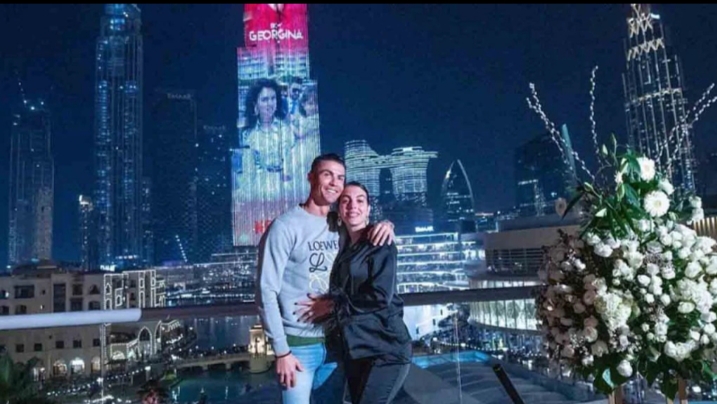 ವಿಶ್ವದ ಅತಿ ಎತ್ತರದ ಕಟ್ಟಡವಾದ ದುಬೈನಲ್ಲಿರುವ ಬುರ್ಜ್ ಖಲೀಫಾದ ಮೇಲೆ ತನ್ನ ಮಡದಿ ಜಾರ್ಜಿನಾ ರೊಡ್ರಿಗಸ್ ಗೆ ಜನ್ಮದಿನದ ಶುಭಾಷಯ ಕೋರಲು ಖ್ಯಾತ ಫುಟ್ ಬಾಲ್ ಆಟಗಾರ ಕ್ರಿಸ್ಟಿಯಾನೋ ರೊನಾಲ್ಡೊ ಸವಿ ನೆನಪಿನ ಮರೆಯಲಾಗದ ಕಾಣಿಕೆಯನ್ನು ನೀಡಿದ್ದಾರೆ.