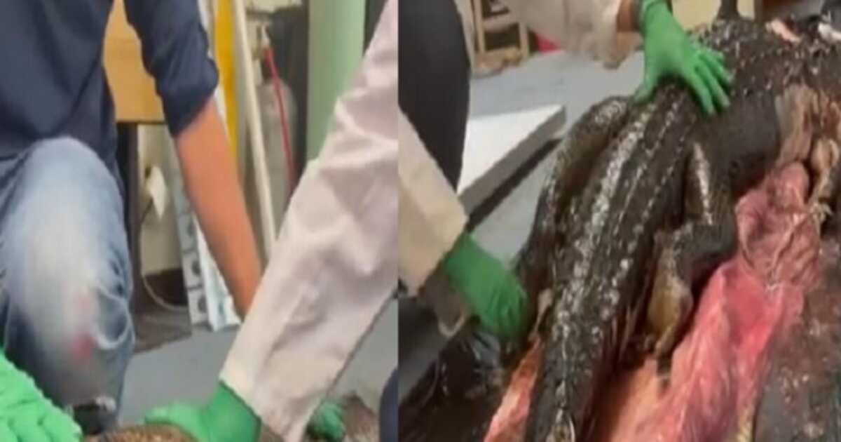 Crocodile inside the python: ಹಾವು ಅತಿದೊಡ್ಡ ಗಾತ್ರದ ವಸ್ತುಗಳನ್ನು ತಿನ್ನುವ ವೀಡಿಯೋ ನೀವು ನೋಡಿರಬಹುದು. ನಾಯಿಯನ್ನು ತಿನ್ನುವುದು, ಅನಂತರ ಅಲುಗಾಡಲು ಸಾಧ್ಯವಾಗದೇ ದೈತ್ಯ ಹಾವು ಸಾವಿಗೀಡಾ ಘಟನೆ ವರದಿಯಾಗಿತ್ತು. ಅಂತಹುದೇ ಒಂದು ಘಟನೆಯ ವೀಡಿಯೋ ಇದೀಗ ವೈರಲ್ ಆಗಿದೆ. ಆದರೆ ಇಲ್ಲಿ ಒಂದು ಹೆಬ್ಬಾವು ಮೊಸಳೆಯೊಂದನ್ನು ತಿಂದಿದೆ.