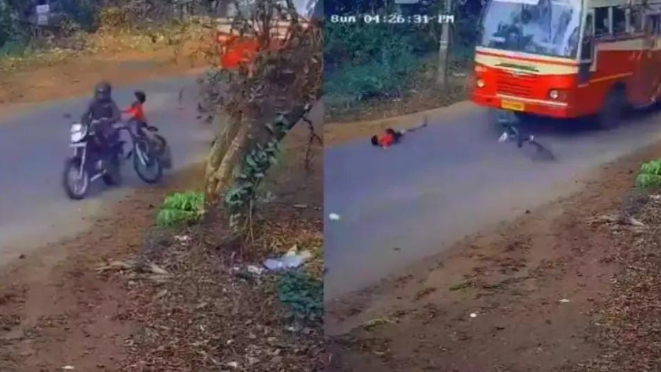 ವೀಡಿಯೊದಲ್ಲಿ, 9 ವರ್ಷದ ಬಾಲಕ ತನ್ನ ಬೈಸಿಕಲನ್ನು ಬದಿಯಿಂದ ರಸ್ತೆಗೆ ವೇಗವಾಗಿ ನುಗ್ಗಿಸುತ್ತಾನೆ. ಆಗ ಸೈಕಲ್ ನೇರವಾಗಿ ಚಲಾಯಿಸುತ್ತಿದ್ದ ಬೈಕಿಗೆ ಡಿಕ್ಕಿ ಹೊಡೆದಿದೆ. ಡಿಕ್ಕಿ ಹೊಡೆದ ತಕ್ಷಣ ಹುಡುಗ ಗಾಳಿಯಲ್ಲಿ ಹಾರಿ ರಸ್ತೆಯ ಇನ್ನೊಂದು ಬದಿಯಲ್ಲಿ ಬಿದ್ದಿದ್ದಾನೆ. ಕೆಲ ಸೆಕೆಂಡುಗಳ ನಂತರ ಕೇರಳದ ಬಸ್ ಅವನ ಸೈಕಲ್ ಮೇಲೆ ಹರಿದಿರುವುದನ್ನು ಕಾಣಬಹುದು. ಅದೃಷ್ಟವಶಾತ್, ಬಾಲಕ ಬಸ್ಸಿನಿಂದ ಸುರಕ್ಷಿತ ದೂರದಲ್ಲಿ ಬಿದ್ದಿದ್ದಾನೆ.