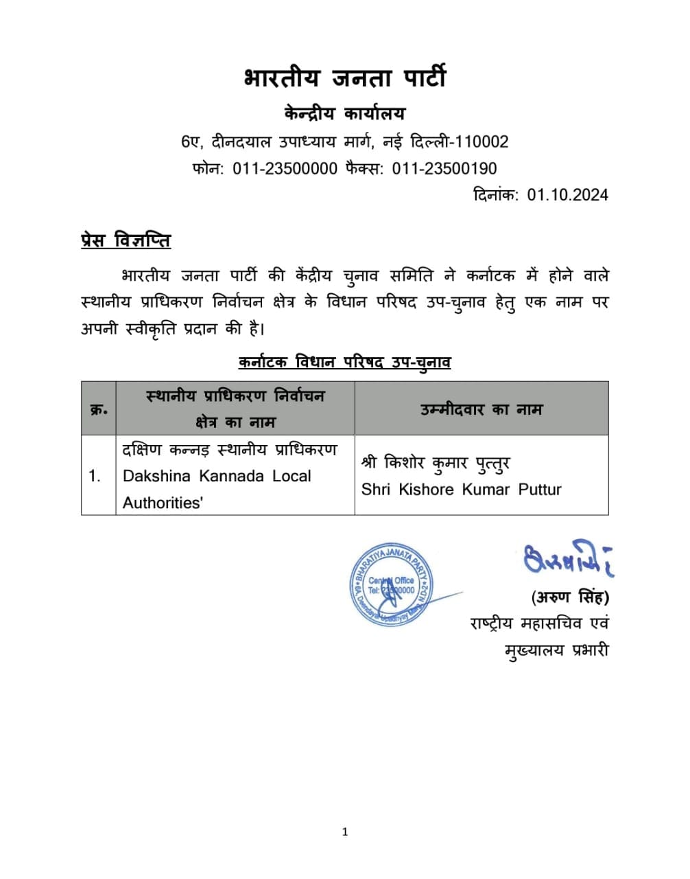 ಕಿಶೋರ್ ಕುಮಾರ್ ಅವರ ಹೆಸರು ಕಳೆದ 2 ಅವಧಿಯಲ್ಲಿ ಪುತ್ತೂರು ಕ್ಷೇತ್ರದಿಂದ ಅಭ್ಯರ್ಥಿತನಕ್ಕೆ ಹೆಸರು ಕೇಳಿ ಬಂದಿತ್ತು.ಆದರೆ ಅವಕಾಶ ಸಿಕ್ಕಿರಲಿಲ್ಲ.ಆದರೂ ಅವರು ಪಕ್ಷಕ್ಕಾಗಿ ನಿಷ್ಠೆಯಿಂದ ಕೆಲಸ ಮಾಡಿದ್ದರು.ಇದೀಗ ಪಕ್ಷ ವಿಧಾನ ಪರಿಷತ್ ಚುನಾವಣೆಯಲ್ಲಿ ಸ್ಪರ್ಧಿಸಲು ಅವಕಾಶ ನೀಡಿದೆ.