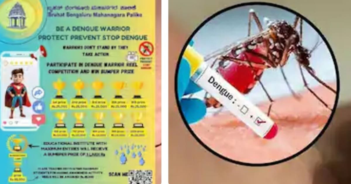 Dengue Reels: ರಾಜ್ಯದಲ್ಲಿ ದಿನದಿಂದ ದಿನಕ್ಕೆ ಡೆಂಘೀ ಏರಿಕೆ ಕಾಣುತ್ತಿವೆ. ಡೆಂಘೀ ಜ್ವರಕ್ಕೆ (Dengue fever) ಸಾವಿರಾರು ಜನರ ಆರೋಗ್ಯ ಹದಗೆಡುತ್ತಿದೆ. ಅಲ್ಲದೆ ಸಿಲಿಕಾನ್ ಸಿಟಿಯಲ್ಲಿ ಡೆಂಘೀ ಪ್ರಕರಣಗಳ ಏರಿಕೆಯಾಗಿದ್ದು ಬಿಬಿಎಂಪಿ ಅಲರ್ಟ್ ಆಗಿದೆ. ಸದ್ಯ ಡೆಂಘೀ ಕಂಟ್ರೋಲ್ ಗೆ ಹರಸಾಹಸಪಡ್ತಿರೋ ಪಾಲಿಕೆ, ಡೆಂಘೀಗೆ ಕಡಿವಾಣ ಹಾಕಲು ಮನೆ ಮನೆ ಸರ್ವೇ ಮಾಡುತ್ತೇವೆ ಎಂದು ಹೊರಟಿದ್ದ ಬಿಬಿಎಂಪಿ, ಇದೀಗ ಇದರ ಜೊತೆಗೆ ಅರಿವು ಮೂಡಿಸುವ ಕಾರ್ಯಕ್ರಮ ಮಾಡಲು ಮುಂದಾಗಿದೆ, ಈ ಹಿನ್ನೆಲೆ ರೀಲ್ಸ್ (Dengue Reels) ಪ್ರಿಯರಿಗೆ ಬಿಬಿಎಂಪಿ ಭರ್ಜರಿ ಆಫರ್ ನೀಡಿದ್ದು, ರೀಲ್ಸ್ ಮಾಡಿ ಒಂದು ಲಕ್ಷಾ ಗೆಲ್ಲಿ ಎಂದು ಬಿಬಿಎಂಪಿ ಆರೋಗ್ಯ ಇಲಾಖೆ ಆಹ್ವಾನಿಸಿಸಿದೆ.