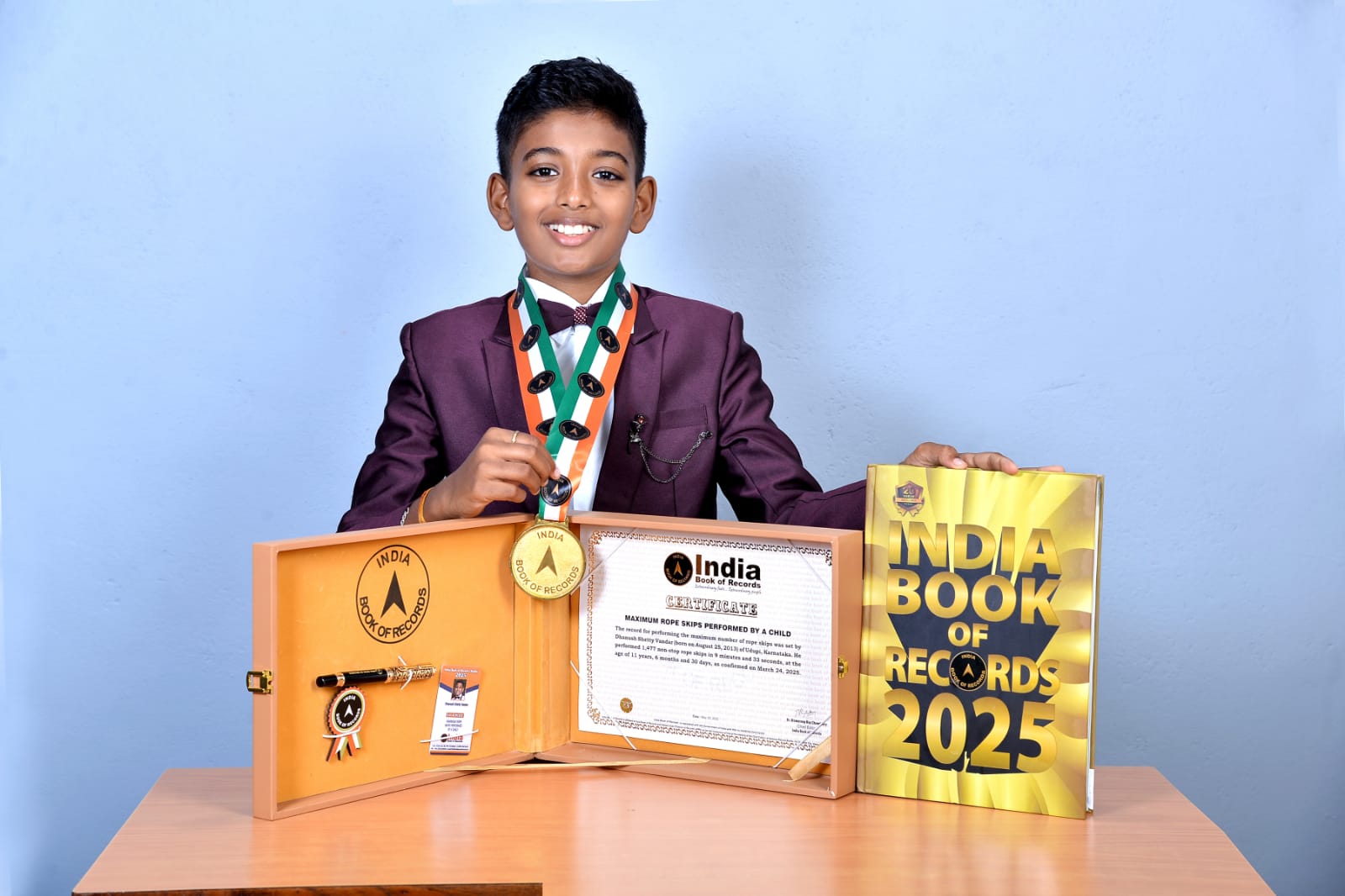 ಸಣ್ಣ ವಯಸ್ಸಿನಲ್ಲಿಯೇ ಶ್ರಮ, ಶಿಸ್ತಿನ ಮೂಲಕ ತಮ್ಮ ಹೆಸರನ್ನು ಇಂಡಿಯಾ ಬುಕ್ ಆಫ್ ರೆಕಾರ್ಡ್ಸ್ನಲ್ಲಿ ದಾಖಲಿಸಿಕೊಂಡಿರುವುದು ಧನುಷ್ರ ಜೀವನದ ಪ್ರಮುಖ ಸಾಧನೆಯಾಗಿದೆ. ಕೇವಲ 9 ನಿಮಿಷ 33 ಸೆಕೆಂಡುಗಳಲ್ಲಿ 1477 ಬಾರಿ ಸ್ಕಿಪ್ಪಿಂಗ್ ಮಾಡುವ ಮೂಲಕ ಅವರು ಈ ದಾಖಲೆ ಸಾಧಿಸಿದ್ದಾರೆ. ಈ ಸಾಧನೆಯು ಅವರ ಪರಿಶ್ರಮ, ದೃಢತೆ ಮತ್ತು ಕ್ರೀಡೆಗೆ ಇರುವ ಅಪಾರ ಪ್ರೀತಿಯನ್ನೂ ತೋರಿಸುತ್ತದೆ.