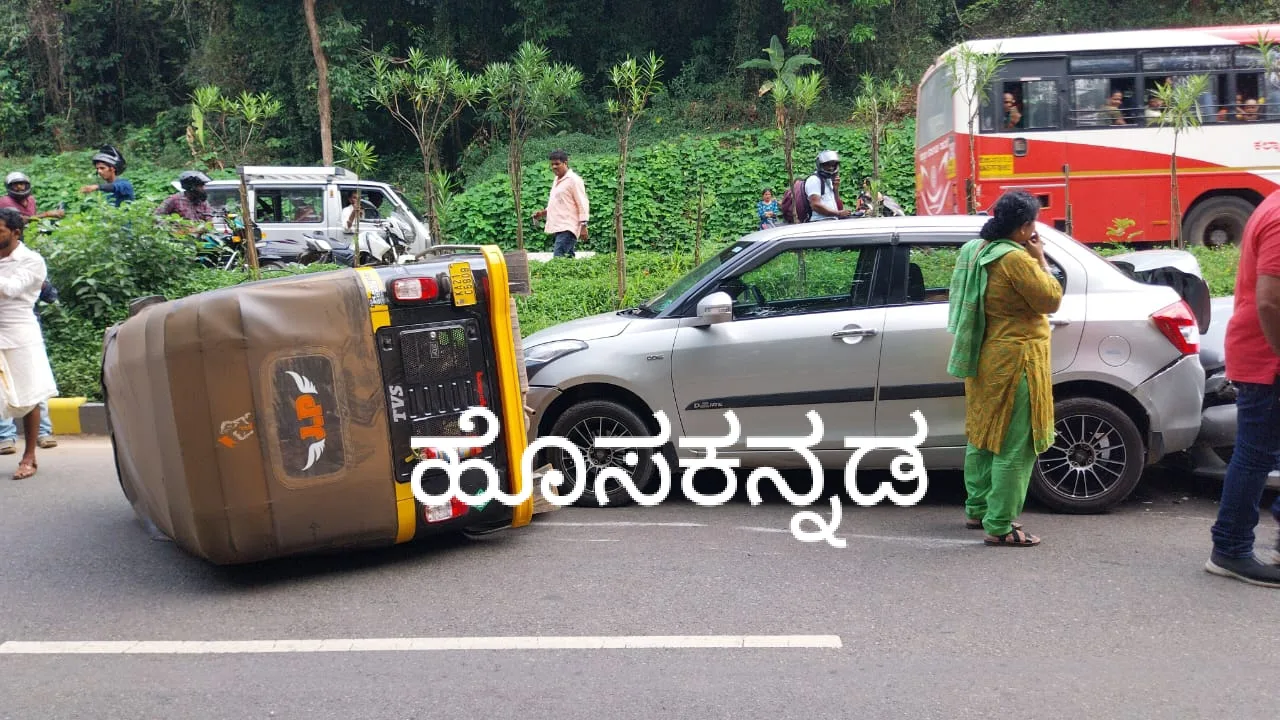 Dharmasthala: ನೆಲ್ಯಾಡಿ ಸಮೀಪ ಆಟೋ ರಿಕ್ಷಾವೊಂದು ಮಗುಚಿ ಬಿದ್ದ ಪರಿಣಾಮ ಹಿಂದಿನಿಂದ ಬಂದ ಕಾರುಗಳು ಪರಸ್ಪರ ಡಿಕ್ಕಿಯಾದ ಘಟನೆಯೊಂದು ನಡೆದಿದೆ.