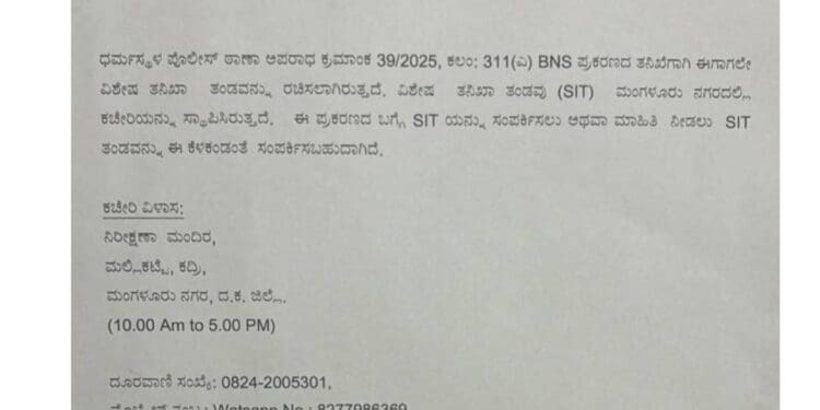 Dharmasthala Case: ಧರ್ಮಸ್ಥಳದಲ್ಲಿ ಶವ ಹೂತಿಟ್ಟ ಪ್ರಕರಣಕ್ಕೆ ಸಂಬಂಧಪಟ್ಟಂತೆ ಎಸ್ಐಟಿ ಅಧಿಕಾರಿಗಳು ಸಹಾಯವಾಣಿ ತೆರೆದಿದ್ದಾರೆ.