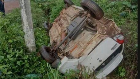 ಕಾರು ಪಲ್ಟಿಯಾಗಿ ವಿದ್ಯುತ್ ಕಂಬಕ್ಕೆ ಗುದ್ದಿದ್ದು ಕಂಬಕ್ಕೂ ಕಾರಿಗೂ ಹಾನಿಯಾಗಿದೆ.
