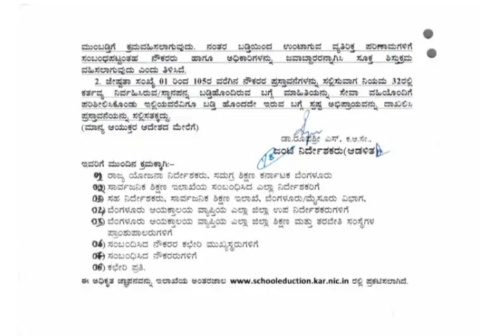 ಈ ಬಗ್ಗೆ ಸಾರ್ವಜನಿಕ ಶಿಕ್ಷಣ ಇಲಾಖೆಯ ಜಂಟಿ ನಿರ್ದೇಶಕರಾದಂತ ಡಾ.ರೂಪಶ್ರೀ ಅವರು ಆದೇಶ ಹೊರಡಿಸಿದ್ದು, ಇಲಾಖೆಯ ಬೆಂಗಳೂರು ಆಯುಕ್ತಾಲಯ ವ್ಯಾಪ್ತಿಯಲ್ಲಿ ಕರ್ತವ್ಯ ನಿರ್ವಹಿಸುತ್ತಿರುವ ದ್ವಿತೀಯ ದರ್ಜೆ ಸಹಾಯಕ, ಬೆರಳಚ್ಚುಗಾರರುಗಳಿಗೆ ಪ್ರಥಮ ದರ್ಜೆ ಸಹಾಯಕರ ಹುದ್ದೆಗೆ ಮುಂಬಡ್ತಿ ಸಂಬಂಧ ಜೇಷ್ಟತಾ ಪಟ್ಟಿಯನ್ನು ಆಧರಿಸಿ, ನೌಕರರ ಪಟ್ಟಿಯನ್ನು ಬಿಡುಗಡೆ ಮಾಡಲಾಗಿದೆ ಎಂದು ತಿಳಿಸಿದ್ದಾರೆ.