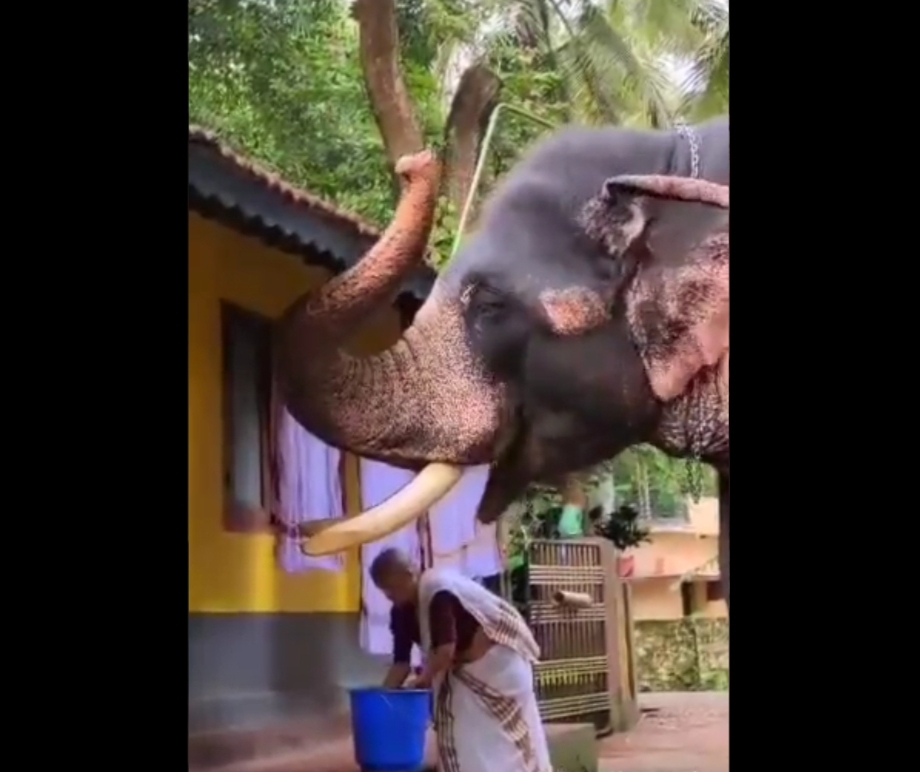 ಕೇರಳದಲ್ಲಿ ಚಿತ್ರೀಕರಿಸಲಾಗಿದ್ದು ಎನ್ನಲಾಗಿರುವ ಈ ವಿಡಿಯೋದಲ್ಲಿ ವೃದ್ಧ ಮಹಿಳೆಯೊಬ್ಬರು ದೈತ್ಯ ಆನೆಗೆ ತನ್ನ ಕೈಯಾರೆ ಊಟ ಮಾಡಿಸುತ್ತಿರುವ ದೃಶ್ಯ ಸೆರೆಯಾಗಿದೆ. ಮನೆಯ ಮಾಡಿಗೆ ತಾಗಿಕೊಂಡಂತೆ ಸೊಂಡಿಲೆತ್ತಿ ನಿಂತ ಗಜರಾಜನಿಗೆ ವೃದ್ಧ ಮಹಿಳೆ ತನ್ನ ಕೈಯಲ್ಲಿ ದೊಡ್ಡ ದೊಡ್ಡ ಗಾತ್ರದ ಉಂಡೆಗಳನ್ನು ಮಾಡಿ ಅದರ ಬಾಯಿಗಿಡುವ ದೃಶ್ಯ ಕಾಣಸಿಗುತ್ತದೆ. ಟ್ವಿಟರ್ನಲ್ಲಿ ಹಂಚಿಕೊಂಡ ವಿಡಿಯೋಕ್ಕೆ ಸಾವಿರಾರು ಜನ ಮೆಚ್ಚುಗೆ ಸೂಚಿಸಿದ್ದು ಅದನ್ನು ರೀಟ್ವೀಟ್ ಮಾಡುವ ಮೂಲಕ ವೈರಲ್ ಮಾಡಿದ್ದಾರೆ.