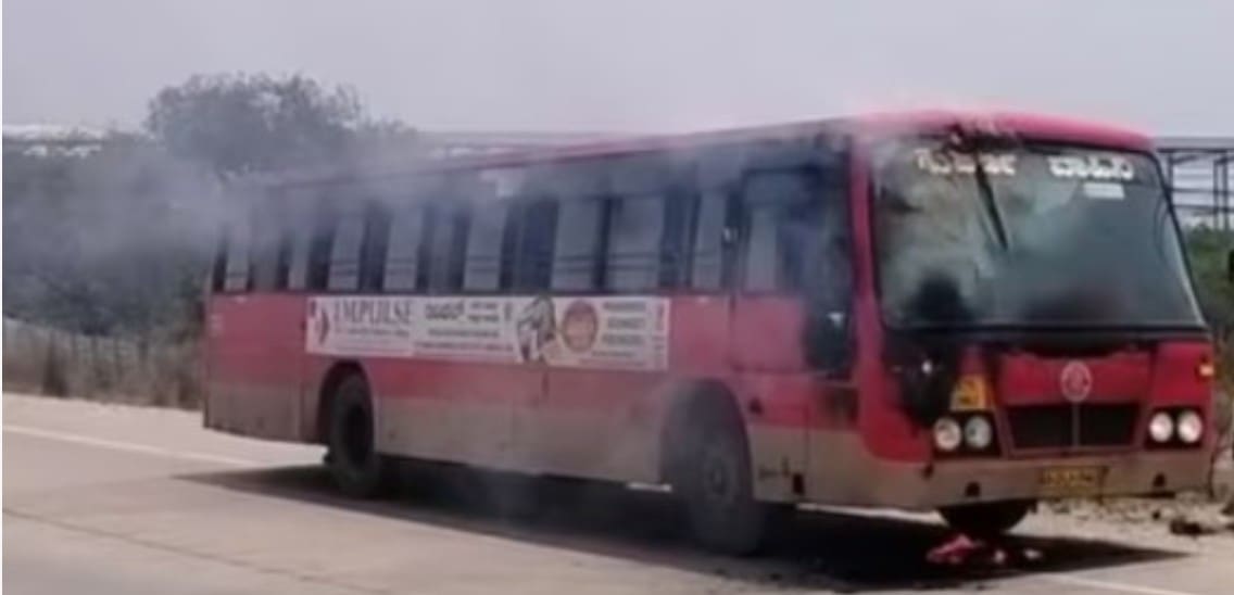 Hubballi: ಸುಮಾರು 50ಕ್ಕೂ ಅಧಿಕ ಪ್ರಯಾಣಿಕರಿದ್ದ ಸಾರಿಗೆ ಬಸ್ನಲ್ಲಿ ಏಕಾಏಕಿ ಹೊಗೆ ಕಾಣಿಸಿಕೊಂಡಿದ್ದು, ಬಳಿಕ ಬೆಂಕಿಹೊತ್ತಿಕೊಂಡ ಘಟನೆ ಹುಬ್ಬಳ್ಳಿ- ವಿಜಯಪುರ- ಸೋಲಾಪುರ ಮುಖ್ಯ ರಸ್ತೆಯಲ್ಲಿ ಇಂದು ನಡೆದಿದೆ.