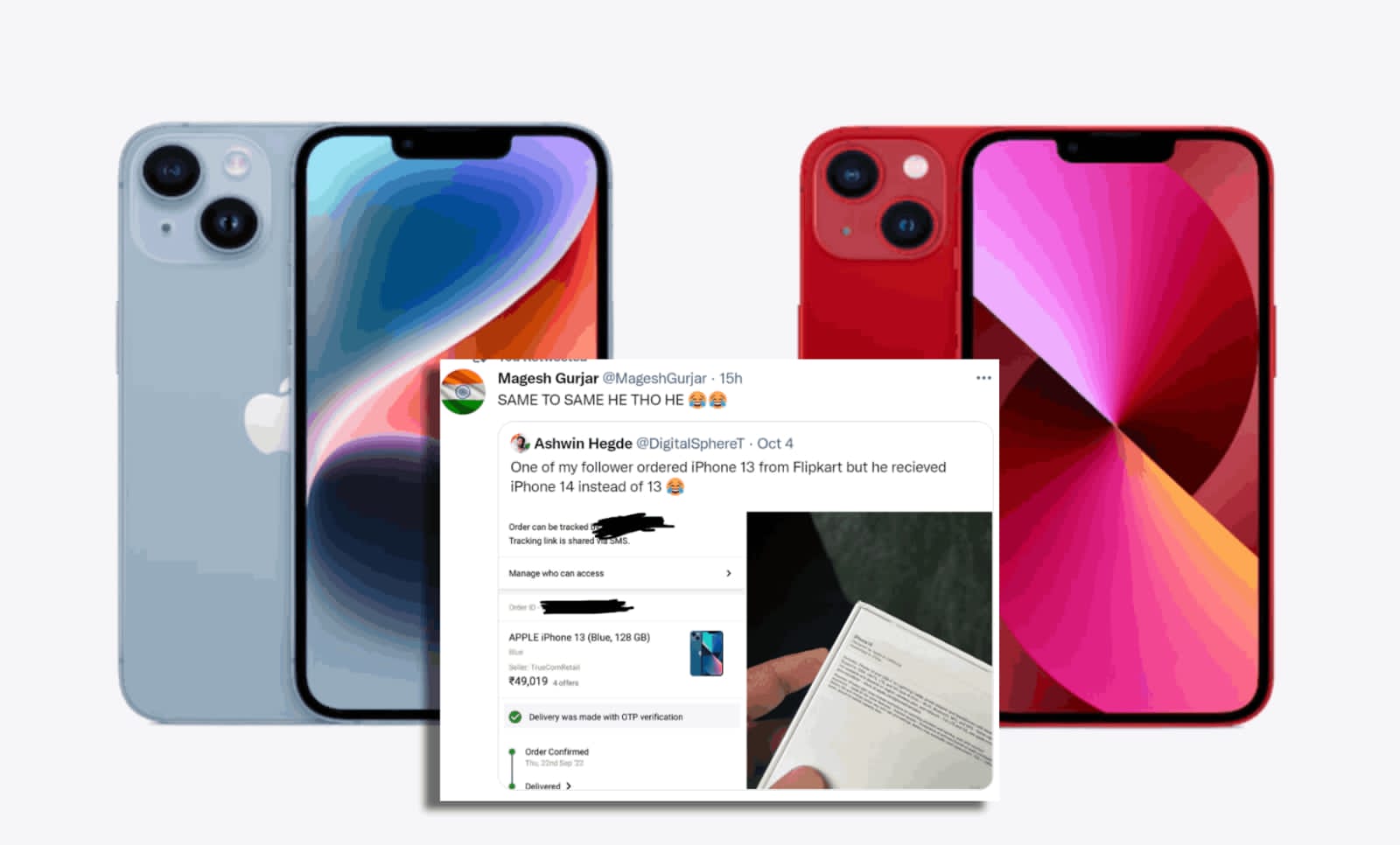 ಈ ಕುರಿತು ಜನಪ್ರಿಯ ಟ್ವಿಟರ್ ಬಳಕೆದಾರ ಅಶ್ವಿನ್ ಹೆಗ್ಡೆ ಎಂಬುವವರು ಟ್ವೀಟ್ ಮಾಡಿದ್ದು, ತಮ್ಮ ಸಾಮಾಜಿಕ ಮಾಧ್ಯಮವನ್ನು ಫಾಲೊ ಮಾಡುತ್ತಿರುವ ವ್ಯಕ್ತಿ ಮೊಬೈಲ್ ಪಡೆದಿದ್ದಾರೆ ಎಂದಿದ್ದಾರೆ. ಈ ಕುರಿತಂತೆ ಪೋಸ್ಟ್ ಒಂದನ್ನು ಹಂಚಿಕೊಂಡಿರುವ ಅಶ್ವಿನ್ ಹೆಗ್ಡೆ, ಐಫೋನ್ 13 ಸಾಧನವನ್ನು ಬುಕ್ ಮಾಡಿದ್ದ ವ್ಯಕ್ತಿಗೆ ಐಫೋನ್ 14 ಬಂದು ತಲುಪಿರುವ ಬಗ್ಗೆ ಸ್ಕ್ರೀನ್‌ಶಾಟ್ ಸಹ ಅಪ್‌ಲೋಡ್ ಮಾಡಿದ್ದಾರೆ.