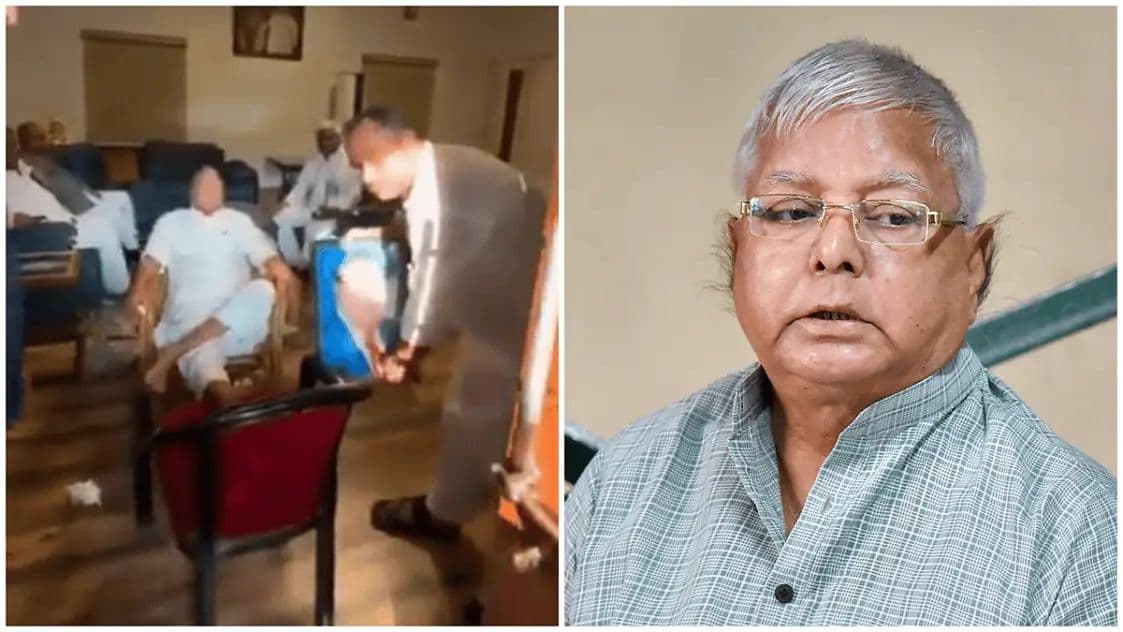 ಹೌದು, ಶನಿವಾರ ಲಾಲು ಪ್ರಸಾದ್ ಯಾದವ್ ಅವರ ಜನ್ಮದಿನ ನಿಮಿತ್ತ ಹಮ್ಮಿಕೊಳ್ಳಲಾಗಿತ್ತು. ಈ ಕಾರ್ಯಕ್ರಮದಲ್ಲಿ ಅವರು ಒಂದು ಕುರ್ಚಿಯ ಮೇಲೆ ಕಾಲಿಟ್ಟುಕೊಂಡು ಮತ್ತೊಂದು ಕುರ್ಚಿಯ ಮೇಲೆ ಕುಳಿತಿದ್ದರು. ಈ ವೇಳೆ ಅವರ ಕಾಲಿನ ಬಳಿ ನಾಯಕನೊಬ್ಬ ಸಂವಿಧಾನ ಶಿಲ್ಪಿ ಡಾ. ಬಿ.ಆರ್. ಅಂಬೇಡ್ಕರ್ ಅವರ ಫೋಟೋ ಇರಿಸಿ ಜೊತೆಗೆ ತಾನೂ ನಿಂತು ಚಿತ್ರ ತೆಗೆಸಿಕೊಂಡಿದ್ದಾನೆ. ಇದು ಸೋಶಿಯಲ್ ಮೀಡಿಯಾದಲ್ಲಿ ವೈರಲ್ ಆಗುತ್ತಿದ್ದಂತೆ ಭಾರಿ ಆಕ್ರೋಶ ವ್ಯಕ್ತವಾಗಿದೆ.