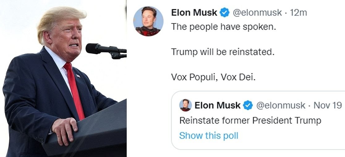 ಈ ಬಗ್ಗೆ ಸ್ವತಃ ಎಲಾನ್ ಮಸ್ಕ್ ಅವರೇ ಟ್ವಿಟರ್ ನಲ್ಲಿ ಟ್ವೀಟ್ ಮಾಡಿದ್ದು, ಜನರು ತಮ್ಮ ಅಭಿಪ್ರಾಯ ನೀಡಿದ್ದು, ಟ್ರಂಪ್ ಅವರ ಟ್ವಿಟರ್ ಖಾತೆಯನ್ನು ಮರುಸ್ಥಾಪಿಸಲಾಗಿದೆ ಎಂದು ಹೇಳಿದ್ದಾರೆ.