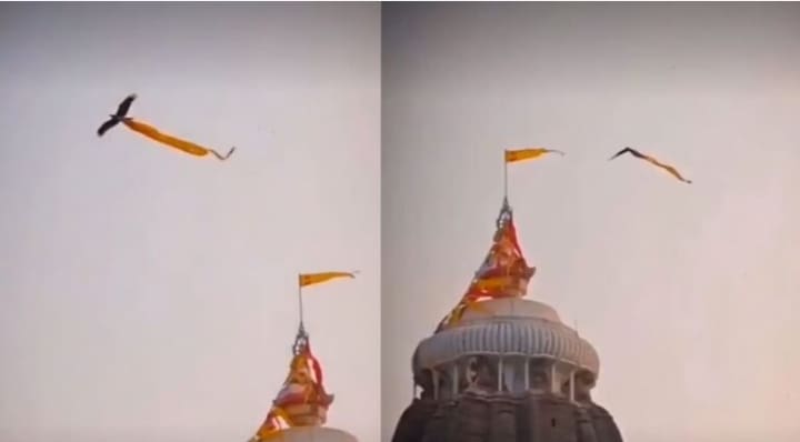 Odisha: ಪುರಿ ಜಗನ್ನಾಥ ದೇವಾಲಯದ ಮೇಲೆ ಗರುಡವೊಂದು ಹಾರಾಟ ನಡೆಸಿದೆ. ಪತಿತಪಬನ್ ಬನ ಪವಿತ್ರ ಧ್ವಜವನ್ನು ಹೋಲುವ ಬಟ್ಟೆಯ ತುಂಡನ್ನು ಕಚ್ಚಿ ಹಿಡಿದ ಗರುಡ ಆಕಾಶದಲ್ಲಿ ದೇವಾಲಯದ ಸುತ್ತ ಸುತ್ತುತ್ತಿರುವ ವೀಡಿಯೊ ಇದೀಗ ಭಾರೀ ವೈರಲ್ ಆಗಿದೆ.