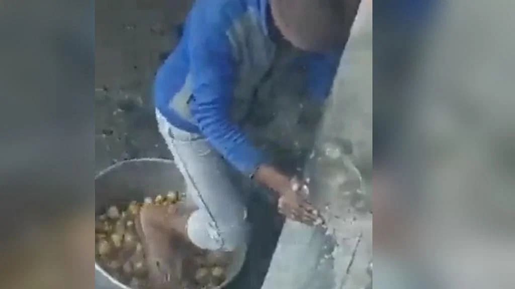 ಗಾಜಿಯಾಬಾದ್ ಹೋಟೆಲ್ ಉದ್ಯೋಗಿಯೊಬ್ಬರು ಚಪ್ಪಲಿ ಧರಿಸಿಕೊಂಡು ಕಾಲಿನಲ್ಲಿ ಆಲೂಗಡ್ಡೆಯ ಸಮೋಸ ತಯಾರಿಸೋದಕ್ಕೆ ತುಳಿಯುವುದನ್ನು ಕಾಣಬಹುದು. ನೀಲಿ ಟೀ ಶರ್ಟ್ ಮತ್ತು ಜೀನ್ಸ್ ಧರಿಸಿದ ವ್ಯಕ್ತಿಯೊಬ್ಬರು ದೊಡ್ಡ ಪಾತ್ರೆಯೊಳಗೆ ಕಾಲಿಟ್ಟು ಆಲೂಗಡ್ಡೆಯನ್ನು ತುಳಿಯುತ್ತಿದ್ದಾರೆ. ಆ ಪಾತ್ರೆಯ ಅರ್ಥದಷ್ಟು ದೊಡ್ಡ ಚಪ್ಪಲಿಯನ್ನು ಹಾಕಿಕೊಂಡಿರುವುದನ್ನು ಕಾಣಿಸುತ್ತದೆ. ಆತ ಆಲೂಗಡ್ಡೆ ತುಂಬಿದ ಪಾತ್ರೆಯಲ್ಲಿ ನಿಂತಿದ್ದಾರೆ ಮತ್ತು ಅವುಗಳನ್ನು ಸಮೋಸ ತಯಾರಿಕೆಗಾಗಿ ಪದೇ ಪದೇ ಕಾಲಿನ ಮೂಲಕ ತುಳಿಯುತ್ತಿದ್ದಾರೆ. ಯುವಕರ ಗುಂಪೊಂದು ಈ ವೀಡಿಯೊವನ್ನು ಚಿತ್ರೀಕರಿಸಿದೆ ಮತ್ತು ಅವರು ವೀಡಿಯೊದಲ್ಲಿ ಅಂಗಡಿಯ ಹೆಸರನ್ನು ಸೇರಿಸಲು ಪರಸ್ಪರ ಕೇಳಿಕೊಳ್ಳುವ ಮಾತನಾಡುವುದನ್ನು ಕೇಳಬಹುದು. ಅವರು ಅಂಗಡಿಯ ಹೆಸರನ್ನು ಹಿಡಿಯಲು ಹೋಗುತ್ತಾರೆ ಆಗ ಅವರಿಗೆ ಕುಮಾರ್ ಸ್ವೀಟ್ಸ್ ಕಾರ್ನರ್ ಎಂದು ತಿಳಿದುಬಂದಿದೆ. ಈ ವಿಡಿಯೋ ನೋಡಿದ ನಂತ್ರ ಯಾರೊಬ್ಬರು ಹೊರಗಡೆ ಸಿಗುವ ಬಿಸಿಬಿಸಿ ಸಮೋಸ ತಿನ್ನೋದಕ್ಕೂ ಹಿಂದೇಟು ಹಾಕುವುದಂತೂ ಗ್ಯಾರಂಟಿ