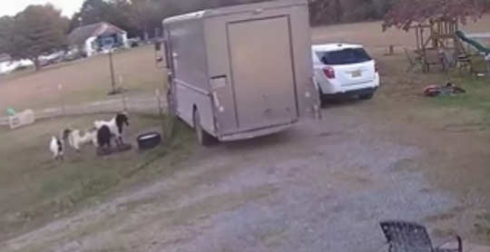 ಮೇಕೆಗಳು ಇರುವ ದೃಶ್ಯವನ್ನು ಹೊಂದಿರುವ ವೀಡಿಯೊದಲ್ಲಿ ಮೇಕೆಗಳು ರಸ್ತೆಯಲ್ಲಿ ಸಾಗುವಾಗ , ಅಲ್ಲಿಗೆ ಪಾರ್ಸೆಲ್ ಸರ್ವೀಸ್ನ ಟ್ರಕ್ ಬರುವುದನ್ನು ಗಮನಿಸಿ ಟ್ರಕ್ ಕಂಡ ಕೂಡಲೇ ಮೇಕೆಗಳು ಕೆಳಗೆ ಬೀಳುತ್ತವೆ. ಅಂದರೆ ಮೇಕೆಗಳಿಗೇನು ಆಗಿಲ್ಲ ಬದಲಿಗೆ, ನಾಲ್ಕು ಮೇಕೆಗಳು ಮೂರ್ಛೆ ಹೋದಂತೆ ನಟಿಸುವ ದೃಶ್ಯವನ್ನು ಇಲ್ಲಿ ನೋಡಬಹುದಾಗಿದೆ.