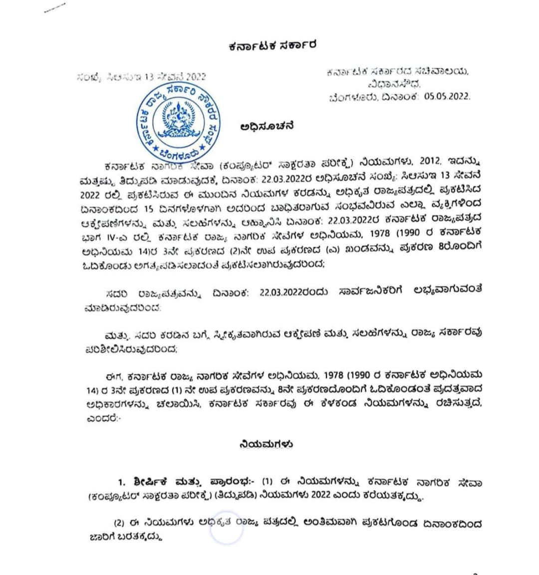 ರಾಜ್ಯ ಸರ್ಕಾರಿ ನೌಕರರಿಗೆ ಒಂದು ಮಹತ್ವದ ಸುದ್ದಿ ಇದೆ. ಎಲ್ಲಾ ನೌಕರರಿಗೆ ಕಂಪ್ಯೂಟರ್ ಕಲಿಕೆ ಕಡ್ಡಾಯಗೊಳಿಸಿ ಕರ್ನಾಟಕ ನಾಗರಿಕ ಸೇವಾ ನಿಯಮಾವಳಿ ತಿದ್ದುಪಡಿ ಮಾಡಿ ಸರ್ಕಾರ ಅಧಿಸೂಚನೆ ಸೂಚನೆ ಹೊರಡಿಸಿದೆ.