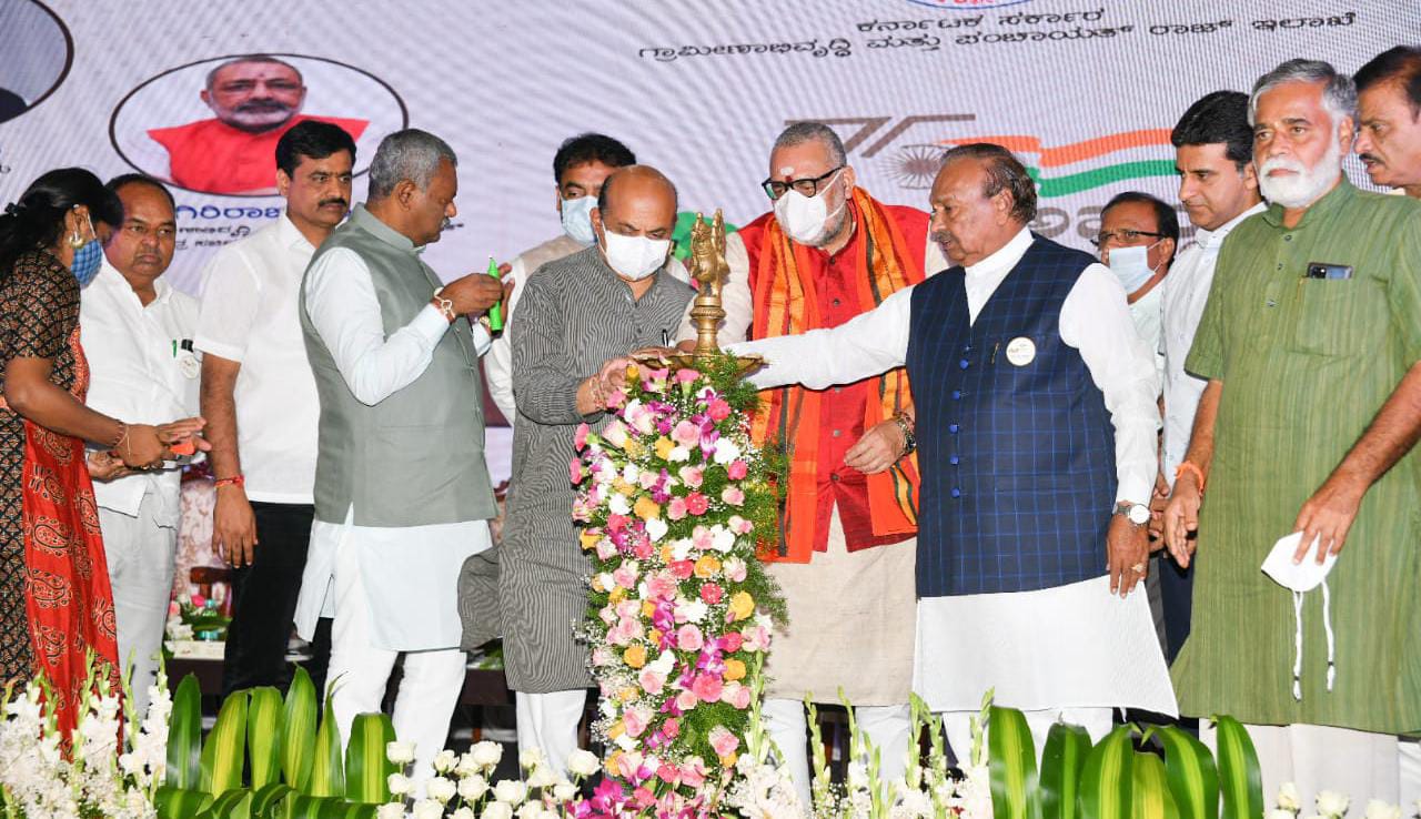 ಪಂಚಾಯತ್ ರಾಜ್ ಮತ್ತು ಗ್ರಾಮೀಣಾಭಿವೃದ್ಧಿ ಇಲಾಖೆಯ ನೂತನ ಯೋಜನೆ ‘ಅಮೃತ ಗ್ರಾಮ ಪಂಚಾಯತ್ ಯೋಜನೆ’ ಗೆ ವಿಧಾನಸೌಧದಲ್ಲಿ ಕೇಂದ್ರ ಸಚಿವ ಗಿರಿರಾಜ್ ಸಿಂಗ್ ಅವರೊಂದಿಗೆ ಚಾಲನೆ ನೀಡಿ ಮಾತನಾಡಿದರು.