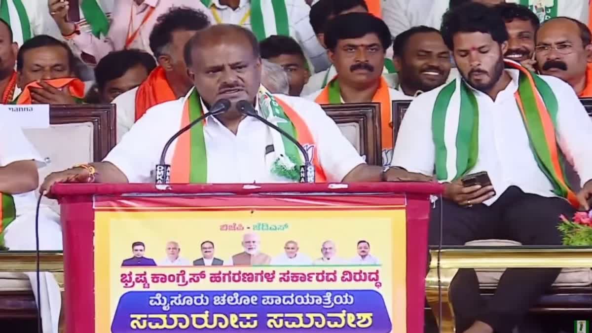 H D Kumaraswamy: ಯಾರ್ಯಾರು ನಮ್ಮ ರಾಜ್ಯವನ್ನು ಲೂಟಿ ಮಾಡುತ್ತಾರೋ, ಕೊಳ್ಳೆ ಹೊಡೆಯುತ್ತಾರೋ ಅಂಥವರ ಪಾಲಿಗೆ ಹಾಗೂ ಡಿ ಕೆ ಶಿವಕುಮಾರ್ ನಿಮ್ಮ ಪಾಲಿಗೂ ನಾನು ನಾಗರ ಹಾವೇ ಎಂದು ಡಿಕೆಶಿಗೆ ಸಂಸದ ಹೆಚ್ ಡಿ ಕುಮಾರಸ್ವಾಮಿ ಟಾಂಗ್ ಕೊಟ್ಟರು. ಜೆಡಿಎಸ್-ಬಿಜೆಪಿ ಹಮ್ಮಿಕೊಂಡಿದ್ದ ಮೈಸೂರು ಚಲೋ ಪಾದಯಾತ್ರೆ ಸಮಾರೋಪ ಸಮಾರಂಭ ಮೈಸೂರು ಮಹಾರಾಜ ಕಾಲೇಜು ಮೈದಾನದಲ್ಲಿ ನಡೆಯಿತು. ಅಲ್ಲಿ ಸಭೆಯನ್ನು ಉದ್ದೇಶಿಸಿ ಮಾತನಾಡಿದ ಅವರು, ಜನಾಂದೋಲದಲ್ಲಿ ಮಾತಾನಾಡಿದ್ದ ಡಿಕೆಶಿ ವಿರುದ್ಧ ವಾಗ್ದಾಳಿ ನಡೆಸಿದರು.