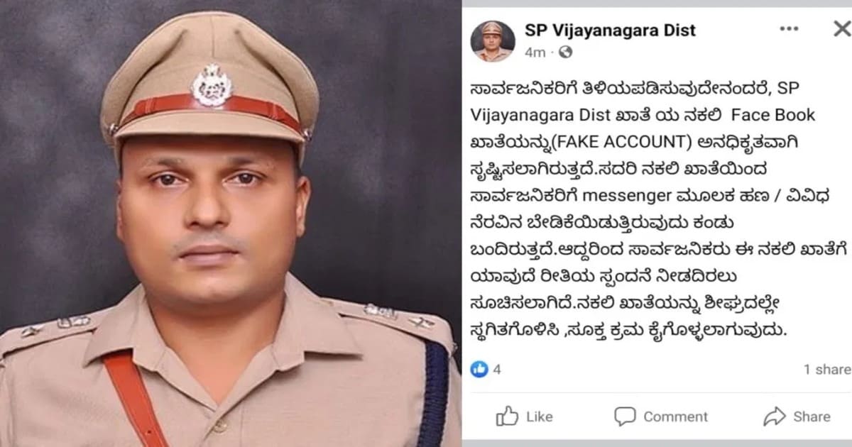Fake Account: ಆಧುನಿಕ ಜಗತ್ತಿನಲ್ಲಿ ಸಾಮಾಜಿಕ ಜಾಲತಾಣಗಳ ಬಳಕೆ ಹೆಚ್ಚಳವಾದಂತೆ ಹ್ಯಾಕರ್ಸ್ಗಳ (Fake Account) ಕಿರಿಕಿರಿ ಕಮ್ಮಿಯಾಗಿಲ್ಲ, ಅದರಲ್ಲೂ ಜನಸಾಮಾನ್ಯರು ಇಂತಹ ಬಲೆಗೆ ಬೀಳುವುದು ಸಹಜ ಆದ್ರೆ ಇದೀಗ ವಿಜಯನಗರದಲ್ಲಿ ಪೊಲೀಸರಿಗೂ ಬಲೆ ಬೀಸಿದ ಘಟನೆಯೊಂದು ಬೆಳಕಿಗೆ ಬಂದಿದೆ.