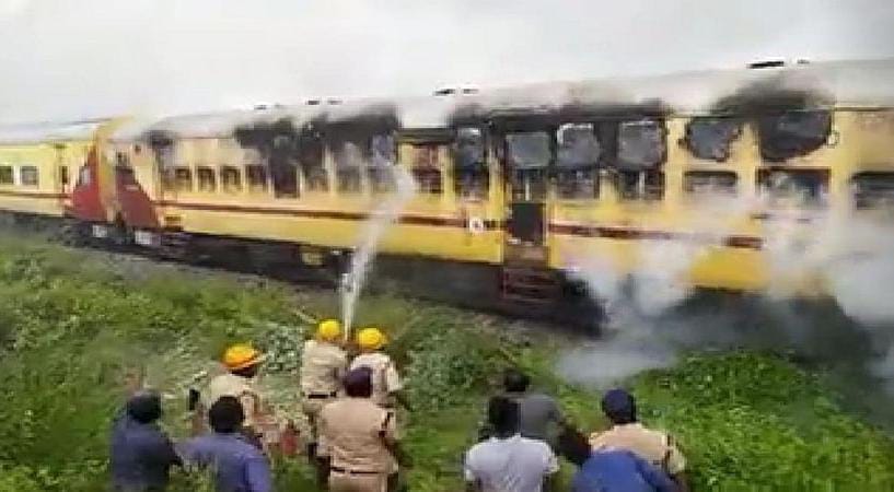 ಬ್ಯಾಟರಿಯಲ್ಲಿ ತಾಂತ್ರಿಕ ದೋಷ ಕಾಣಿಸಿಕೊಂಡ ಹಿನ್ನೆಲೆಯಲ್ಲಿ ಅಗ್ನಿ ಅವಘಡ ಸಂಭವಿಸಿದೆ ಎನ್ನಲಾಗಿದೆ. ಬೆಂಕಿ ಹೊತ್ತಿಕೊಂಡಿದ್ದರಿಂದ ಎರಡು ಬೋಗಿಗಳ ಆಸನಗಳು ಸಂಪೂರ್ಣವಾಗಿ ಸುಟ್ಟಿವೆ.