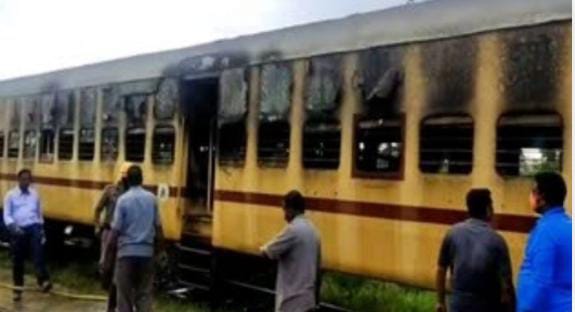 ನಿಂತಿದ್ದ ರೈಲಿನಲ್ಲಿ ಆಕಸ್ಮಿಕ ಬೆಂಕಿ ಕಾಣಿಸಿಕೊಂಡಿದ್ದು ಎರಡಕ್ಕೂ ಹೆಚ್ಚು ಬೋಗಿಗಳು ಸುಟ್ಟು ಕರಕಲಾದ ಘಟನೆ ಹಾಸನ ಜಿಲ್ಲೆಯ ಅರಸೀಕೆರೆಯಲ್ಲಿ ನಡೆದಿದೆ.