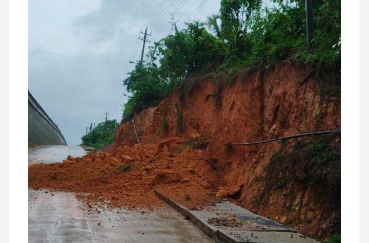 ಈ ಭಾಗದಲ್ಲಿ ತಡೆಗೋಡೆ ನಿರ್ಮಿಸದೇ ಇದ್ದದ್ದರಿಂದ ನಿರಂತರ ಸುರಿಯುತ್ತಿರುವ ಮಳೆಗೆ ಗುಡ್ಡ ಕುಸಿದು ಮಣ್ಣು ರಸ್ತೆಗೆ ಬಿದ್ದಿದೆ.