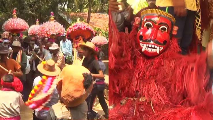 ಬಣ್ಣ ಬಣ್ಣದ ವೇಷ ತೊಟ್ಟು ತಮಟೆ, ನಗಾರಿ, ಗುಮಟೆಗಳ ವಾಧ್ಯದ ಜೊತೆ ಕೋಲಾಟ ವಾಡುತ್ತಾ ಮನೆ ಮನೆಗೆ ತೆರಳಿ ರಂಜಿಸುವ ವಿಶೇಷ ಜನಪದ ಆಚರಣೆ ಇಲ್ಲಿದೆ. ಸುಗ್ಗಿಯ ವೇಷ ಭೂಷಣಗಳನ್ನು ಧರಿಸಿದ ಕೋಲು ಮೇಳದ ಕಲಾವಿದರ ಕೈಯಲ್ಲಿ ಕೋಲುಗಳನ್ನು ಹಿಡಿದು ಹಿಮ್ಮೇಳದ ವಾದ್ಯದ ಗತ್ತಿಗನುಗುಣವಾಗಿ ಪದಗಳನ್ನು ಪದಗಾರರು ಹಾಡುತ್ತಾರೆ. ಹಾಡಿದ ಪದಗಳನ್ನು ಪುನಾರಾವರ್ತನೆಗೊಳಿಸುತ್ತಾ ಕಲಾವಿದರು ಕುಣಿಯುತ್ತಾರೆ. ಹಿಮ್ಮೇಳದ ಲಯಕ್ಕನುಗುಣವಾಗಿ ಕುಣಿಯುವರ ಕುಣಿತ ಹಾಗೂ ಅಂಗಾಂಗ ವಿನ್ಯಾಸ ಭಂಗಿಯೂ ಬದಲಾಗುತ್ತದೆ. ಕುಂಚದ ಮೇಳದವರು ನವಿಲುಗರಿಯಿಂದ ತಯಾರಿಸಿದ್ದ ಕುಂಚವನ್ನು ಎಡಗೈಯಲ್ಲಿ ಹಿಡಿದು ಬಲಗೈಲಿ ಹಿಡಿದಿರುವ ಕೋಲಿನಿಂದ ಕುಂಚದ ಬುಡಕ್ಕೆ ಮೆಲ್ಲನೆ ಲಯಬದ್ದವಾಗಿ ಕುಟ್ಟುತ್ತಾರೆ.