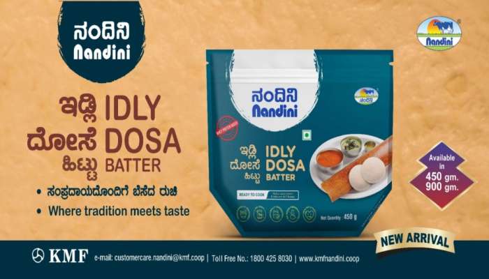 ಕೆಎಂಎಫ್ ಇದೀಗ ನಂದಿನಿ ದೋಸೆ, ಇಡ್ಲಿ ಹಿಟ್ಟಿಗೆ 450 ಗ್ರಾಂ ಹಿಟ್ಟಿಗೆ 40 ರೂ., 900 ಗ್ರಾಂ ಹಿಟ್ಟಿಗೆ 80 ರೂ.ಗಳಂತೆ ಮಾರಾಟ ಮಾಡುತ್ತಿದೆ.