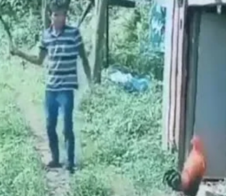 ಸಾಮಾನ್ಯವಾಗಿ ಮನುಷ್ಯರು ಪ್ರಾಣಿಗಳನ್ನು ಆಟವಾಡಿಸುವುದನ್ನು ಹಾಗೂ ತೊಂದರೆ ಮಾಡಲು ಬಂದಾಗ ಓಡಿಸಿಕೊಂಡು ಹೋಗುವುದನ್ನು ನೋಡಿರುತ್ತೇವೆ. ಆದರೆ ಇಲ್ಲಿ ಸಣ್ಣ ಹುಂಜವೊಂದು ಯುವಕನನ್ನು ಬೆನ್ನಟ್ಟಿ ಹೋಗಿದ್ದು, ಎಲ್ಲರ ಮುಖದಲ್ಲಿ ನಗು ಮೂಡಿಸಿದೆ. ಕಾಟ ಕೊಡುತ್ತಿದ್ದ ಯುವಕನೊಬ್ಬನನ್ನು ಹುಂಜ ಬೆನ್ನಟ್ಟಿಕೊಂಡು ಹೋಗಿದ್ದು, ಹುಂಜಗಳು ಸಹ ಅಪಾಯಕಾರಿ ಎಂಬುದನ್ನು ತೋರಿಸಿದೆ.