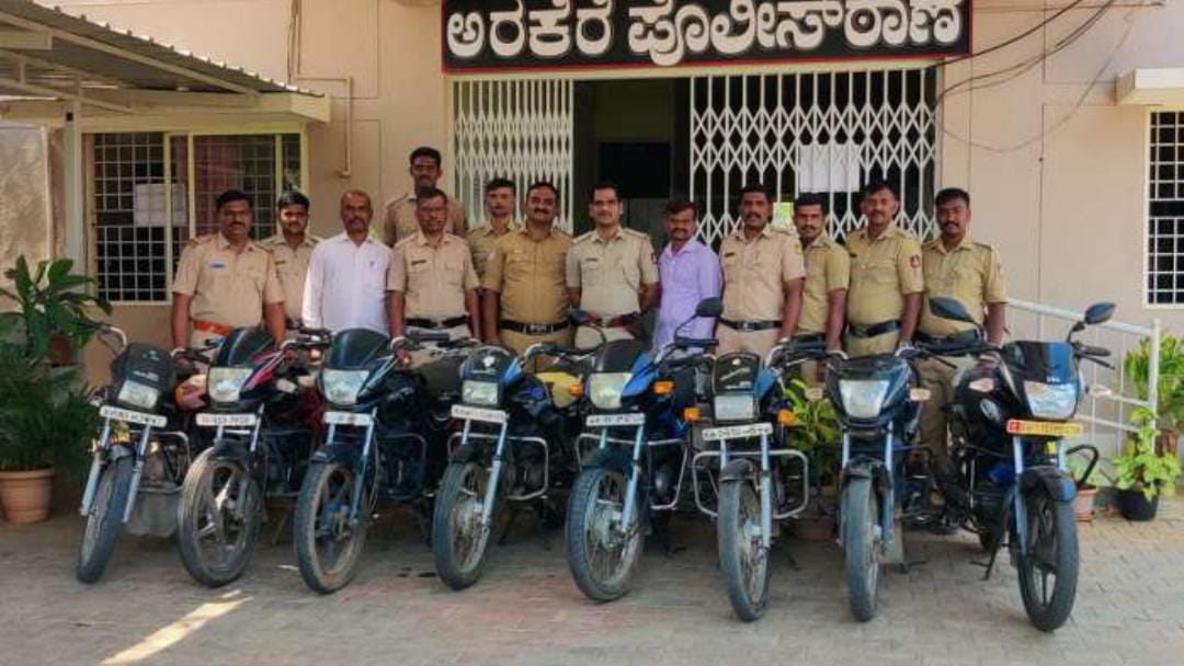 ದೊಡ್ಡಪಾಳ್ಯ ಗ್ರಾಮದ ಮಧು ಬಂಧಿತ ಬೈಕ್ ಕಳ್ಳ ಆರೋಪಿ. ಬಂಧಿತನಿಂದ ಪೊಲೀಸರು ಸುಮಾರು 3 ಲಕ್ಷ ಮೌಲ್ಯದ 10 ಬೈಕ್ ಗಳ ಜಪ್ತಿ ಮಾಡಿದ್ದಾರೆ. ಅರೆಕೆರೆ ಗ್ರಾಮದ ಪತ್ನಿ ಸೌಮ್ಯ ಮನೆಯಲ್ಲೂ 1 ಲಕ್ಷ ರೂ. ಕಳವು ಮಾಡಿದ್ದ ಆರೋಪವೂ ಪತಿ ಮೇಲೆ ಇದೆ.