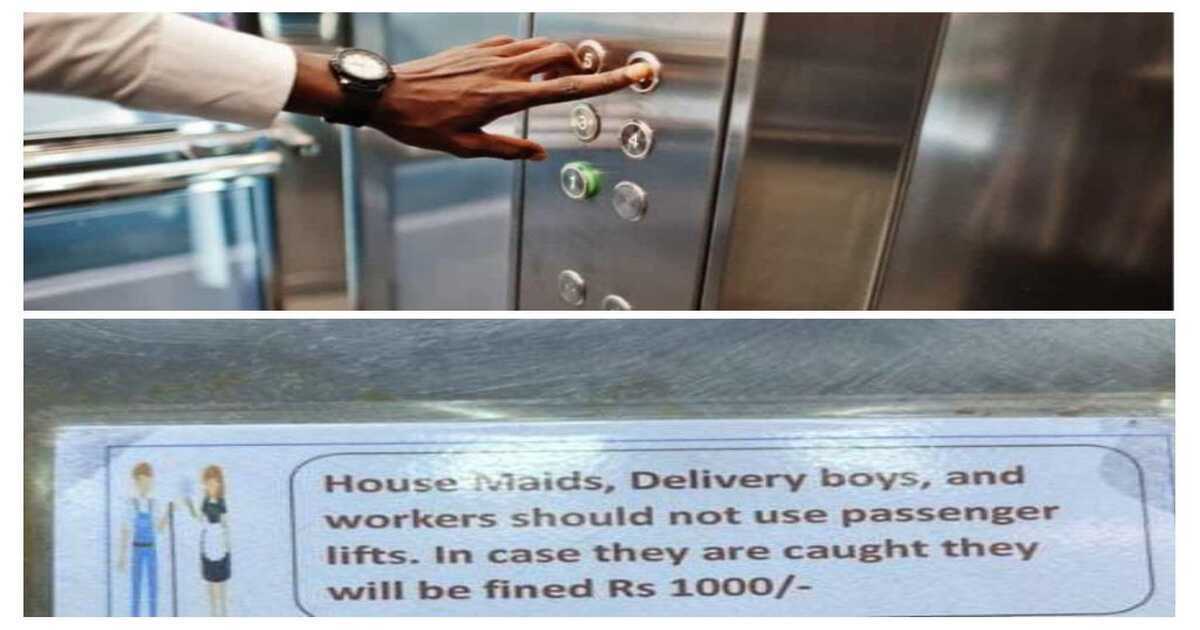 ಹೌದು, ಡೆಲಿವರಿ ಬಾಯ್ಗಳು, ನೌಕರಿಯರು ಮತ್ತು ಕೆಲಸಗಾರರು ಕಟ್ಟಡದೊಳಗಿನ ಪ್ರಯಾಣಿಕರ ಲಿಫ್ಟ್ ಅನ್ನು ಬಳಸಬಾರದು. ಒಂದುವೇಳೆ ಈ ರೀತಿ ಯಾರಾದರೂ ಸಿಕ್ಕಿಬಿದ್ದರೇ ಅವರ ಮೇಲೆ 1,000 ರೂ. ದಂಡ ವಿಧಿಸಲಾಗುವುದು. ಇದು ಸೋಷಿಯಲ್ ಮಿಡಿಯಾ ಬಳಕೆದಾರರ ಗಮನಕ್ಕೆ ಬಂದಿದ್ದು, ಸಾಮಾಜಿಕ ತಾರತಮ್ಯದ ಬಗ್ಗೆ ಕಳವಳ ವ್ಯಕ್ತಪಡಿಸಿದೆ.