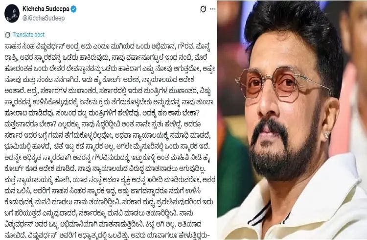 ನಾನೇ ಮುಂದೆ ನಿಂತು ಅದನ್ನು ಮತ್ತೆ ಒಂದು ಸ್ಮಾರಕವಾಗಿ ಮರುಸ್ಥಾಪನೆ ಮಾಡುವುದಕ್ಕೆ ಮುಂದಾಗಿತ್ತೇನೆ. ಅದಕ್ಕೆಒಂದು ಅವಕಾಶ ಮಾಡಿ ಕೊಡಿ. ಅವರು ನಮ್ಮ ಎದೆಯ ಒಳಗೆ ಸದಾ ಇರುತ್ತಾರೆ ನಿಜ. ಹಾಗಂತ ಪ್ರಾರ್ಥನೆ, ಗೌರವಕ್ಕೆ ಸಂಕೇತವಾಗಿ ಒಂದು ಸ್ಥಳ ಬೇಕು. ಆ ಪ್ರೀತಿಗೆ, ಪ್ರೇಮಕ್ಕೆ, ಅಭಿಮಾನಕ್ಕೆ ದ್ರೋಹ ಮಾಡಬೇಡಿ ಅಂತ ನಾನು ವಿನಂತಿ ಮಾಡುತ್ತೇನೆ ಎಂಬುದಾಗಿ ಕಿಚ್ಚ ಸುಧೀಪ್ ಎಂದು ಪೋಸ್ಟ್ನಲ್ಲಿ ಬರೆದಿದ್ದಾರೆ.