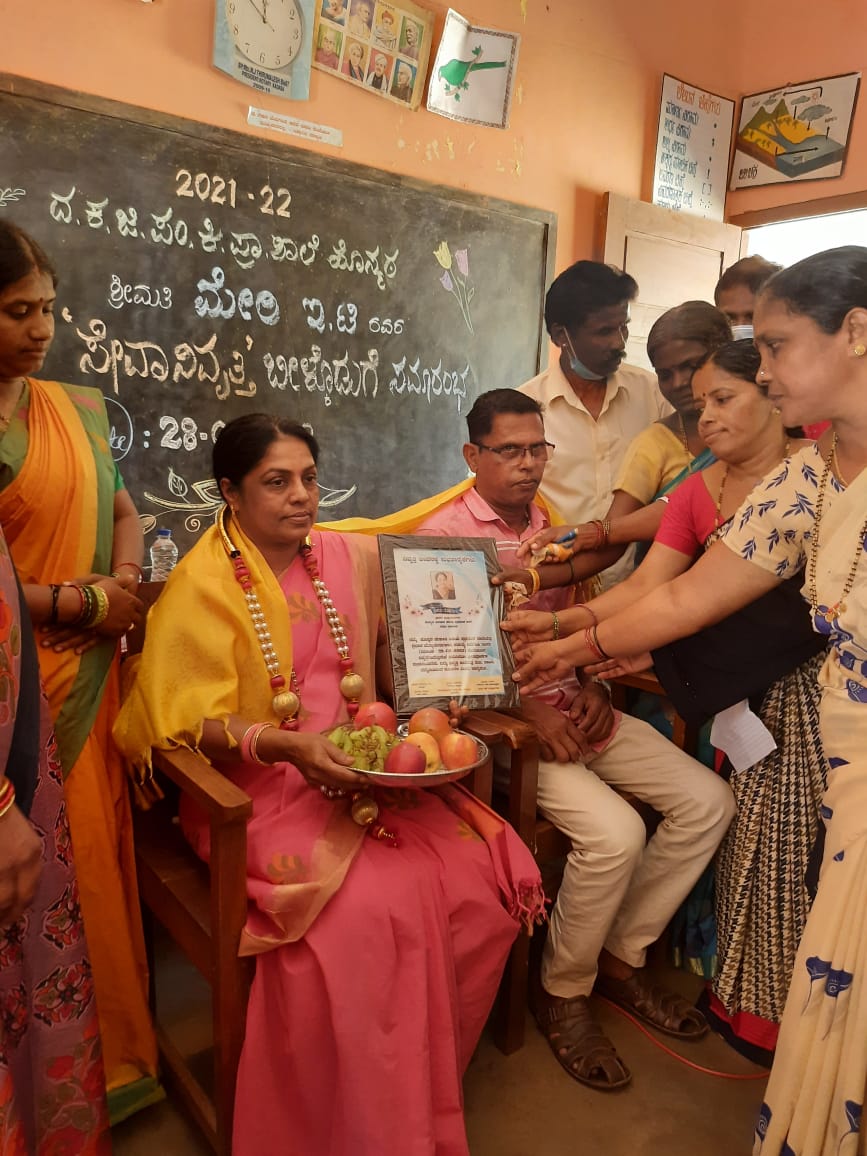 2003 ರಲ್ಲಿ ಕಿರಿಯ ಪ್ರಾಥಮಿಕ ಶಾಲೆಗೆ ನಿಯೋಜನೆಗೊಂಡಿದ್ದ ಮೇರಿ ಇ.ಟಿ ಅವರು ಸತತವಾಗಿ 19 ವರ್ಷಗಳ ಸುದೀರ್ಘ ಸೇವೆಯನ್ನು ಸಲ್ಲಿಸಿ ಶಾಲೆಯನ್ನು ಮೇಲ್ದರ್ಜೆಗೇರಿಸುವಲ್ಲಿ ಉತ್ತಮ ಪಾತ್ರ ವಹಿಸಿದ್ದು, ವಿದಾಯ ಸನ್ಮಾನ ಮಾಡುವ ಮೂಲಕ ಅವರ ಕಾರ್ಯವೈಖರಿಯನ್ನು ಈ ಸಂದರ್ಭದಲ್ಲಿ ಮೆಲುಕು ಹಾಕಲಾಯಿತು.