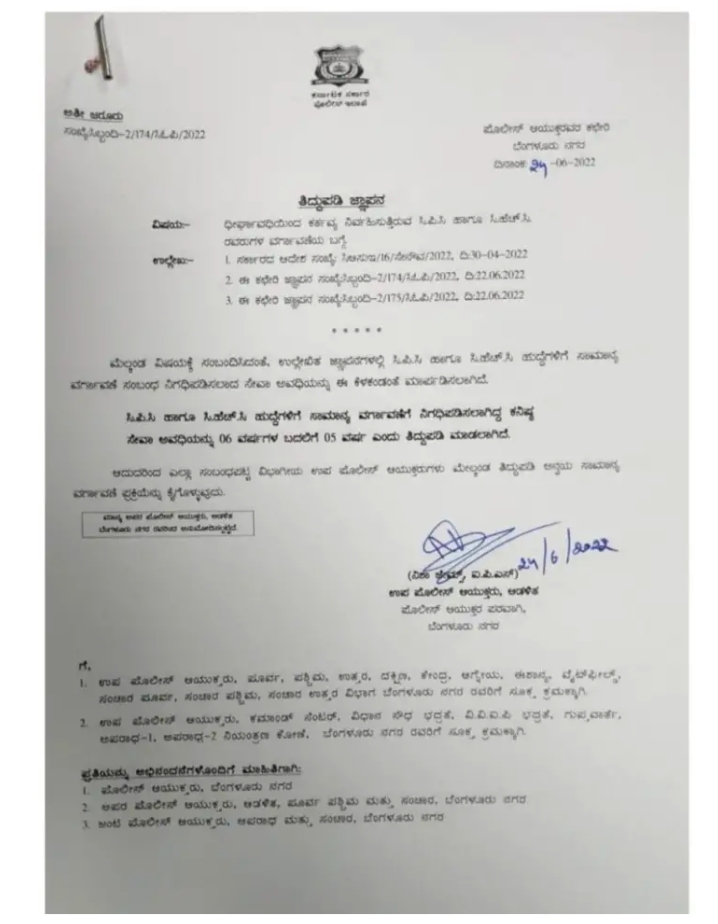 ಬೆಂಗಳೂರು ನಗರದ ಪೊಲೀಸ್ ಆಯುಕ್ತರ ಠಾಣಾ ವ್ಯಾಪ್ತಿಯಲ್ಲಿ ಕಾನ್ ಸ್ಟೇಬಲ್ ಗಳಿಗೆ ಈ ನೂತನ ಆದೇಶ ಅನ್ವಯವಾಗಲಿದೆ. ಒಂದೇ ಠಾಣೆಯಲ್ಲಿ ಹಲವು ವರ್ಷಗಳಿಂದ ಕಾರ್ಯ ನಿರ್ವಹಿಸುತ್ತಿರುವ ಕಾನ್ಸ್ಟೇಬಲ್ ಗಳನ್ನು ಮುಂದಿನ ದಿನಗಳಲ್ಲಿ ವರ್ಗಾವಣೆಯಾಗಬಹುದು ಎಂದು ಆದೇಶದಲ್ಲಿ ತಿಳಿಸಲಾಗಿದೆ.