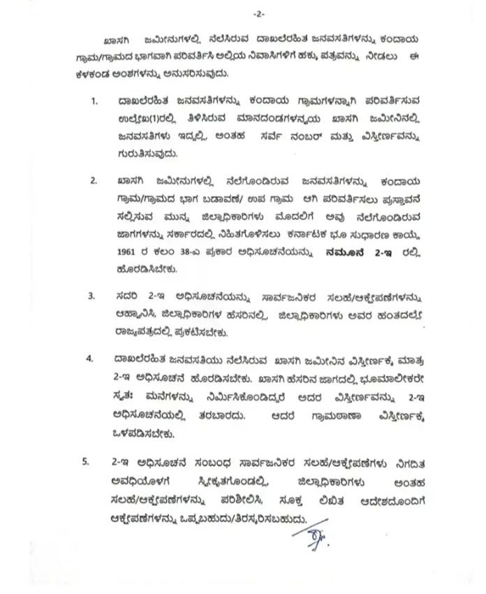ಖಾಸಗಿ ಜಮೀನುಗಳಲ್ಲಿ ವಾಸಿಸುತ್ತಾ, ದಾಖಲೆ ರಹಿತರಾಗಿದ್ದಂತ ಜನತೆಗೆ ಸರ್ಕಾರ ಭರ್ಜರಿ ಗುಡ್ ನ್ಯೂಸ್ ನೀಡಿದೆ. ಖಾಸಗಿ ಜಮೀನುಗಳಲ್ಲಿ ( Private Lands ) ನೆಲೆಸಿರುವ ದಾಖಲೆ ರಹಿತ ಜನವಸತಿಗಳನ್ನು ಕಂದಾಯ ಗ್ರಾಮ, ಗ್ರಾಮದ ಭಾಗವಾಗಿ ಪರಿವರ್ತಿಸಿ, ಅಲ್ಲಿಯ ನಿವಾಸಿಗಳಿಗೆ ಹಕ್ಕು ಪತ್ರಗಳನ್ನು (Title Deed ) ನೀಡುವಂತೆ ರಾಜ್ಯ ಸರ್ಕಾರ ( Karnataka Government) ಆದೇಶಿಸಿದೆ.