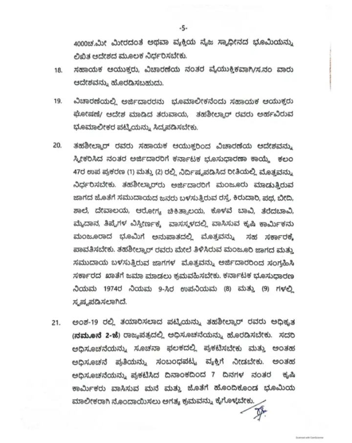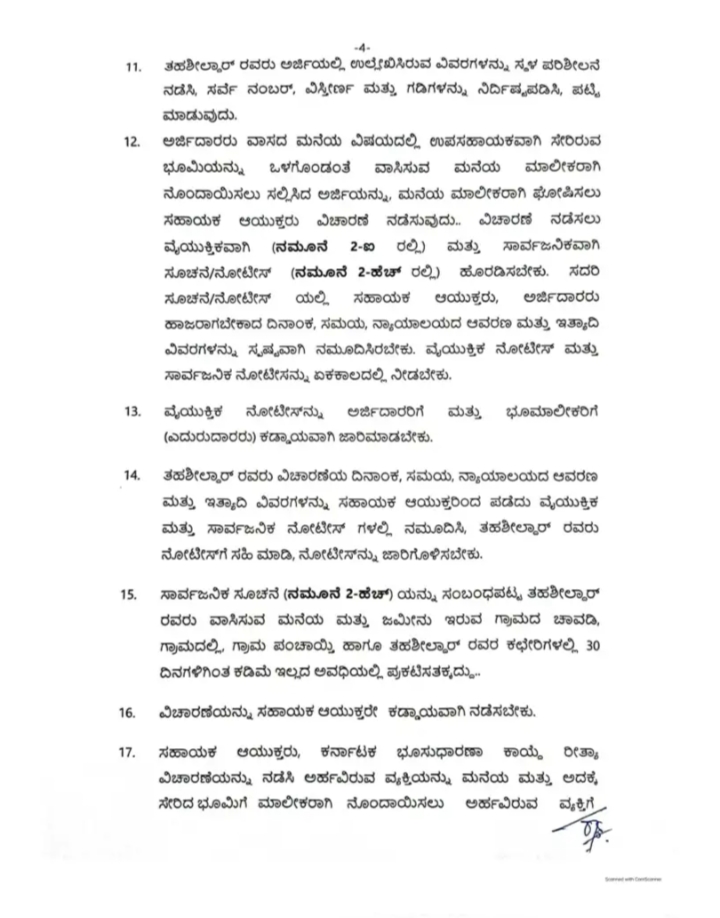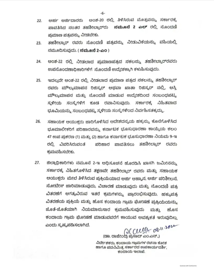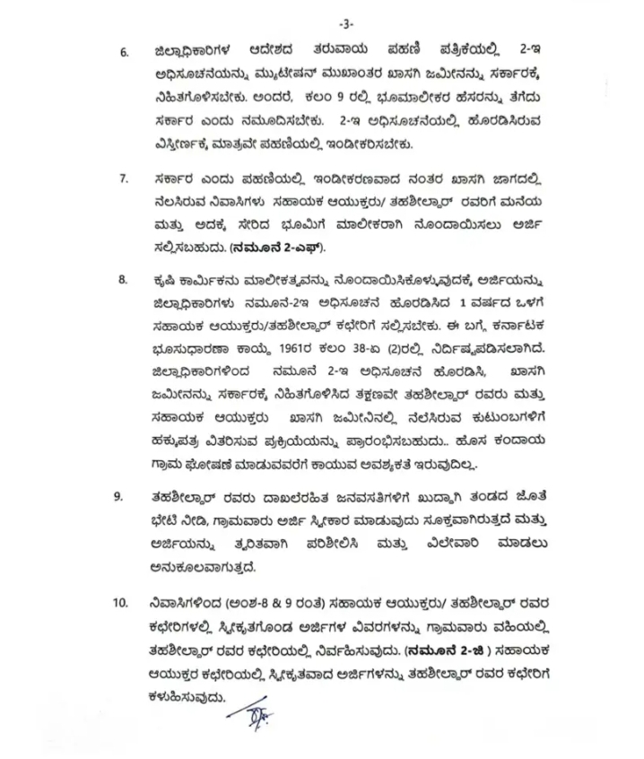 ಈ ಯೋಜನೆಯನ್ನು ಅನುಷ್ಠಾನಗೊಳಿಸಲು ಕಾಲ ಕಾಲಕ್ಕೆ ಸರ್ಕಾರ ಮಾರ್ಗಸೂಚಿಗಳನ್ನು ಹೊರಡಿಸುತ್ತಿದೆ. ಸರ್ಕಾರವು ಕರ್ನಾಟಕ ಭೂಸುಧಾರಣಾ ಕಾಯ್ದೆಗೆ ತಿದ್ದುಪಡಿ ತಂದು ಕಲಂ 38ಎ ಮತ್ತು ನಿಯಮ 9ಸಿ ಸೇರ್ಪಡೆಗೊಳಿಸುವ ಮೂಲಕ ಖಾಸಗಿ ಜಮೀನಿನಲ್ಲಿ ನೆಲೆಗೊಂಡಿರುವ ದಾಖಲೆರಹಿತ ಜನವಸತಿ ಪ್ರದೇಶಗಳಲ್ಲಿನ ನಿವಾಸಿಗಳಿಗೆ ಹಕ್ಕುಪತ್ರ ನೀಡಲು ಅವಕಾಶ ಕಲ್ಪಿಸಲಾಗಿದ ಎಂದು ಹೇಳಿದ್ದಾರೆ.
