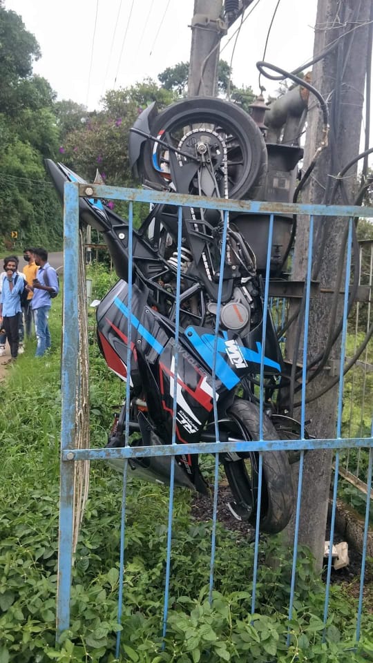 ವಿಷ್ಣುಪ್ರಸಾದ್ ತನ್ನ ಗೆಳೆಯನ ಬೈಕ್ ನ್ನು ಅತಿ ವೇಗದಲ್ಲಿ ಓಡಿಸಿಕೊಂಡು ಬಂದಿದ್ದಾನೆ. ಈ ವೇಳೆ ಬೈಕ್ ಆತನ ನಿಯಂತ್ರಣ ತಪ್ಪಿ, ಆತ ಒಂದು ಕಡೆ ಬಿದ್ದಿದ್ದಾನೆ. ಅಲ್ಲದೆ ಬೈಕ್ ಮೂರು ಪಲ್ಟಿ ಹೊಡೆದು ಟ್ರಾನ್ಸ್ಫಾರ್ಮರ್ ಏರಿದೆ.
