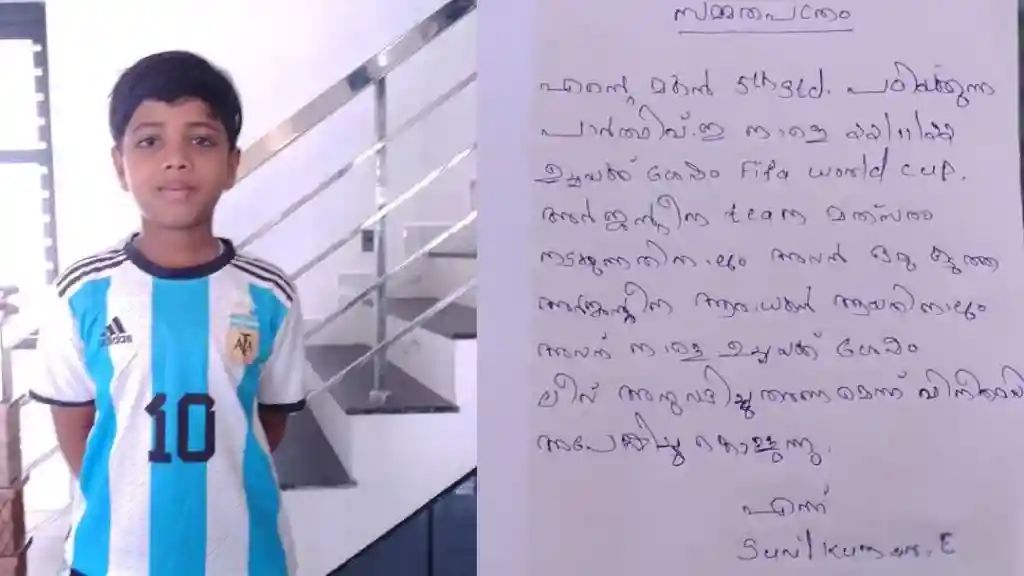 ಕೇರಳದ ಕ್ಯಾಲಿಕಟ್‌ನ ಕೆಲವು ಮಕ್ಕಳು ಸೌದಿ ಅರೇಬಿಯಾ ವಿರುದ್ಧ ಮೆಸ್ಸಿಯ ಅರ್ಜೆಂಟೀನಾ ಆಟವನ್ನು ವೀಕ್ಷಿಸಲು ತಮ್ಮ ಶಿಕ್ಷಕರಿಗೆ ರಜೆ ಅರ್ಜಿ ಸಲ್ಲಿಸಿದ್ದಾರೆ. ಸದ್ಯ ಈ ರಜೆ ಅರ್ಜಿಯನ್ನು ಸ್ಥಳೀಯ ಭಾಷೆಯಲ್ಲಿ ಬರೆದಿದ್ದು, ಫುಟ್ಬಾಲ್ ಪಂದ್ಯದ ಬಗ್ಗೆ ಮಕ್ಕಳಿಗಿರುವ ಆಸಕ್ತಿ ಎದ್ದು ಕಾಣುತ್ತದೆ.