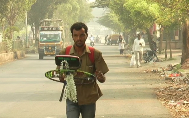 ಮುರಗಮಲ್ಲ ಕಡೆಯಿಂದ ಚಿಂತಾಮಣಿ ನಗರದ ಕಡೆಗೆ, ಕಾಲ್ನಡಿಗೆಯಲ್ಲಿ ಕೈಯಲ್ಲಿ ಸ್ಟೇರಿಂಗ್ ವ್ಹೀಲ್ ಹಿಡಿದು ಬಸ್ ಚಾಲನೆ ಮಾಡುವವನಂತೆ ನಟನೆ ಮಾಡುತ್ತಾನೆ. ಗೇರ್ ಬದಲಾಯಿಸೋದು, ನಿಲ್ದಾಣಗಳ ಬಳಿ ಬಂದು ಬ್ರೇಕ್ ಹಾಕಿ ಬಸ್ ನಿಲ್ಲಿಸೋದು, ಪ್ರಯಾಣಿಕರನ್ನು ಹತ್ತಿಸಿಕೊಳ್ಳುವಂತೆ ನಟನೆ ಮಾಡ್ತಾನೆ. ಚಿಂತಾಮಣಿ ನಗರದ ಪ್ರಮುಖ ರಸ್ತೆಗಳಲ್ಲಿ ಈ ಯುವಕ ವಿಚಿತ್ರವಾಗಿ ಓಡಾಡುತ್ತಾ ಜನರ ಗಮನ ಸೆಳೆಯುತ್ತಿದ್ದಾನೆ.