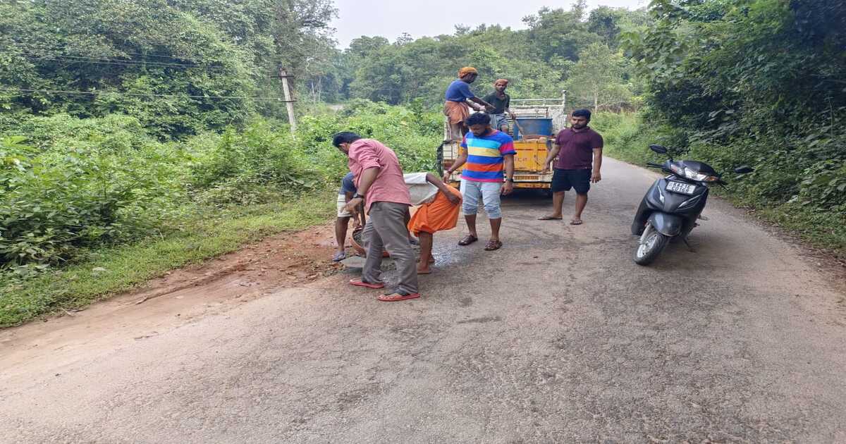 Kokkada: ‘ಕೈಲಾದಷ್ಟು ಕಾಂಕ್ರೀಟ್ ಕಲಸು ‘ – ಕೊಕ್ಕಡದಲ್ಲಿ ಸ್ವತಃ ರೋಡ್ ರಿಪೇರಿಗೆ ಇಳಿದ KPM ಗೆಳೆಯರು !