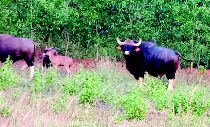 ಬಂಬಿಲ ಬೈಲಾಡಿಯ ಕೃಷಿಕ ಅನ್ನಪೂರ್ಣ ಪ್ರಸಾದ್ ರೈ ಅವರ ತೋಟದಲ್ಲಿ ಬುಧವಾರ ಕೆಲಸ ಮಾಡಿಕೊಂಡಿದ್ದ ಕಾರ್ಮಿಕರಿಗೆ ಮರಿ ಸಹಿತ ಇರುವ ಕಾಡುಕೋಣದ ಹಿಂಡು ಕಾಣಿಸಿಕೊಂಡಿದೆ.