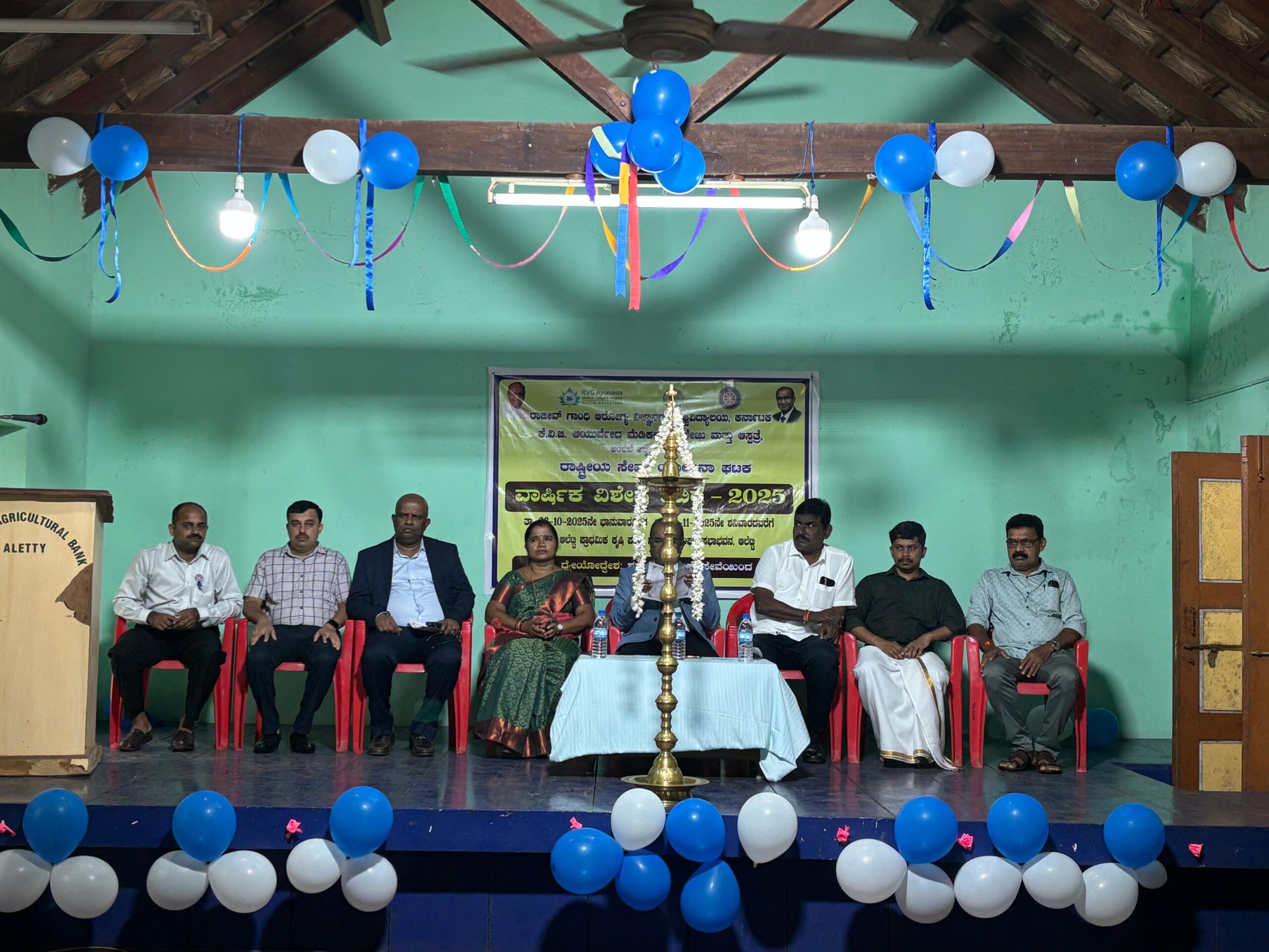 ಕೆವಿಜಿ ಆಯುರ್ವೇದ ಮೆಡಿಕಲ್ ಕಾಲೇಜು ಮತ್ತು ಆಸ್ಪತ್ರೆ ಸುಳ್ಯ ಇದರ ರಾಷ್ಟ್ರೀಯ ಸೇವಾ ಯೋಜನಾ ಘಟಕದ ವತಿಯಿಂದ ನಡೆಯಲಿರುವ ಒಂದು ವಾರದ ವಾರ್ಷಿಕ ವಿಶೇಷ ಶಿಬಿರದ ಉದ್ಘಾಟನಾ ಕಾರ್ಯಕ್ರಮವು ಅ. 26 ರಂದು ಆಲೆಟ್ಟಿ ಪ್ರಾಥಮಿಕ ಕೃಷಿಪತ್ತಿನ ಸಹಕಾರಿ ಸಂಘದ ಸಭಾಭವನದಲ್ಲಿ ನಡೆಯಿತು.