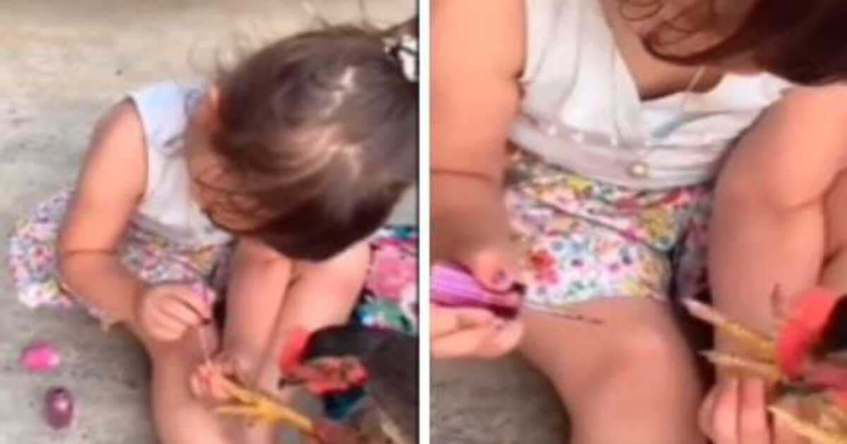 ವೈರಲ್ ಆದ ಈ ವಿಡಿಯೋದಲ್ಲಿ, ಮುದ್ದಾದ ಈ ಪುಟ್ಟ ಹುಡುಗಿ ಕೋಳಿಯೊಂದರ ಕಾಲುಗಳಿಗೆ ನೇಲ್ ಪಾಲಿಶ್ ಹಚ್ಚುತ್ತಿರುವುದನ್ನು ಕಾಣಬಹುದು. ಮುದ್ದಾದ ಫ್ರಾಕ್ ಧರಿಸಿ ನೆಲದ ಮೇಲೆ ಕುಳಿತಿರುವ ಪುಟ್ಟ ಹುಡುಗಿ ಕೋಳಿ ಕಾಲಗಳನ್ನು ನೇಲ್ ಪಾಲಿಶ್ ನಿಂದ ಸಿಂಗರಿಸುತ್ತಿದ್ದಾಳೆ. ಕೋಳಿ ಕೂಡ ತುಟಿಕ್ ಪಿಟಿಕ್ ಎನ್ನದೆ ನೇಲ್ ಪಾಲಿಶ್ (Nail polish) ಹಚ್ಚಿಸಿಕೊಳ್ಳುತ್ತಿದೆ. ಮರೂನ್ ಬಣ್ಣದ ನೇಲ್ ಪಾಲಿಶ್ ಹಚ್ಚುವ ಹುಡುಗಿ ಕೋಳಿಯ(chicken) ಕಾಲಿನ ಅಂದವನ್ನು ಹೆಚ್ಚಿಸಿದ್ದಾಳೆ.