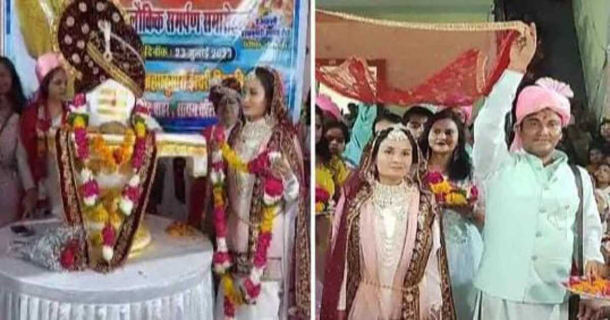 ತನ್ನ ಜೀವನವನ್ನು ಶಿವನಿಗಾಗಿ(Lord Shiva) ಅರ್ಪಿಸಲು ನಿರ್ಧರಿಸಿದ ಯುವತಿ, ಭಗವಾನ್ ಶಿವನ ಮೇಲಿನ ಭಾವಪರವಶ ಭಕ್ತಿಯಿಂದ, ಯುವತಿ ಮದುವೆಯಾಗಲು (Marriage) ಪೋಷಕರಲ್ಲಿ ಒತ್ತಾಯಿಸಿದ್ದಾಳೆ. ಇದರಿಂದ ಏನೂ ಮಾಡಲಾಗದೆ ಪಾಲಕರೂ ಶಿವನ ಜೊತೆಗಿನ ತಮ್ಮ ಮಗಳ ಮದುವೆಗೆ ಒಪ್ಪಿಗೆ ಸೂಚಿಸಿದ್ದು ,ಶಾಸ್ತ್ರೋಸ್ತ್ರವಾಗಿ ಮಗಳ ಮದುವೆಯನ್ನು ಅವರ ಕುಟುಂಬಸ್ಥರು ಅದ್ದೂರಿಯಾಗಿ ಮಾಡಿದರು.