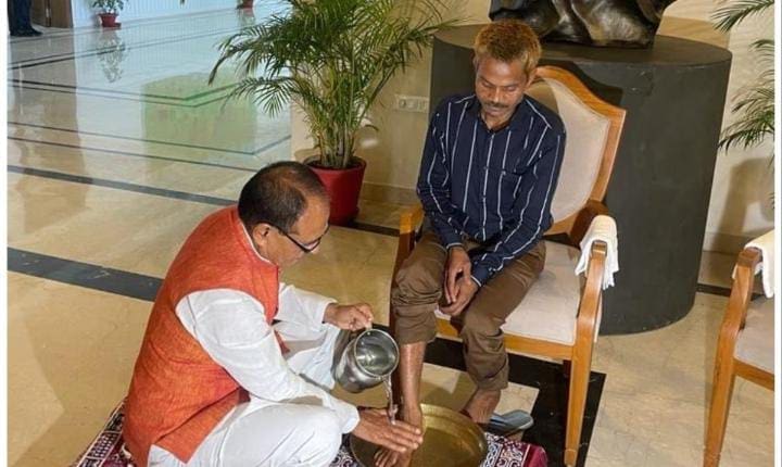 ಹೌದು, ಮಧ್ಯಪ್ರದೇಶ ಮುಖ್ಯಮಂತ್ರಿ ಶಿವರಾಜ್ ಸಿಂಗ್ ಚೌಹಾಣ್ ಅವರು ತಮ್ಮ ನಿವಾಸಕ್ಕೆ ಮೂತ್ರ ವಿಸರ್ಜನೆ ಪ್ರಕರಣದ ಸಂತ್ರಸ್ತ ದಶ್ಮತ್ ರಾವತ್​​ರನ್ನು ಕರೆಯಿಸಿಕೊಂಡು ದಶರಥ್ ರಾವತ್​​ರ ಪಾದ ತೊಳೆದಿದ್ದಾರೆ.